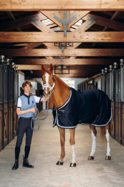 Die Cameron Decke besteht aus bequemem schnelltrocknenden Material mit UV-Schutz-Funktion. Das sportliche Design mit Kordeleinfassung luxuriös und stylisch. Doppelte T-Schnallen, die Kreuzgurte und der Schweifriemen halten die Decke an Ort und Stelle. Kombiniere sie mit unserem Cameron Halfter (#22334) und Führstrick (#22644) für einen tollen Look!