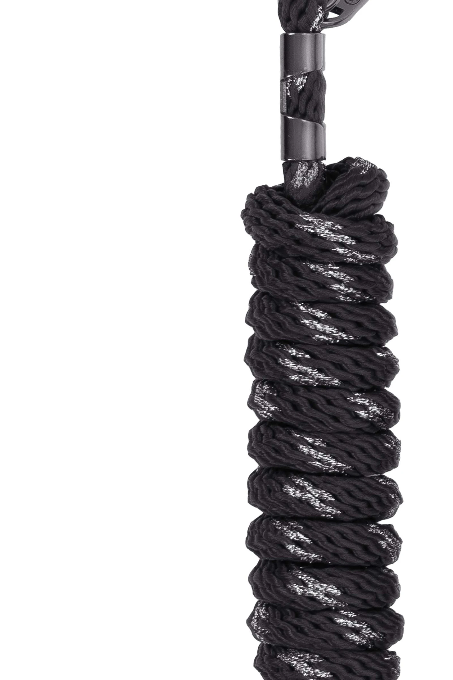Führstrick mit Panikhaken und neuer, dekorativer Metallplatte mit gefrästem, silbernen Cavallo Logo. Alle Metallteile in Gunmetal gehalten. Die besondere Webart ermöglicht einen festen Griff. Einfarbig, mit silbern schimmerndem Streifen in Metalloptik durchzogen. Länge ca. 2,20 m.
