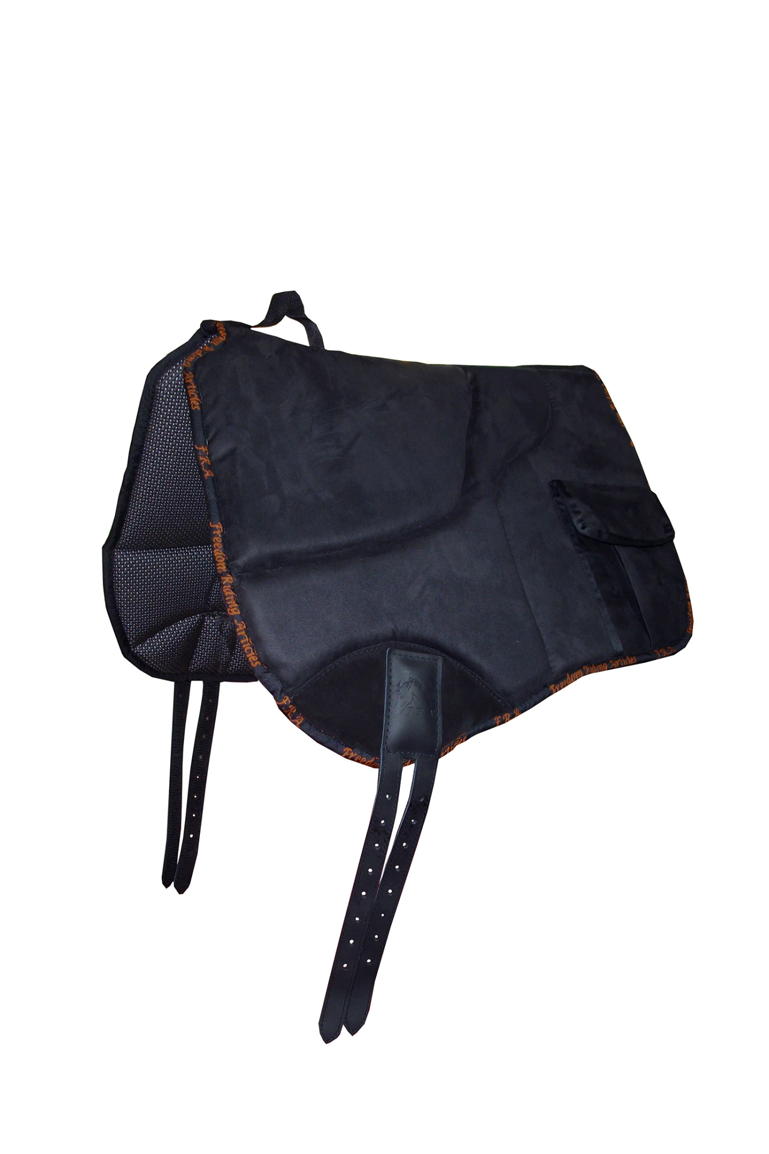 Das sehr gute anatomische Design und der großzügige Widerristausschnitt geben diesem Reitpad einen ganz eigenen Charakter. Die Oberseite ist aus Microfaser, die Unterseite aus Sympanova, die Gurtstrupfen aus Leder. Die Schaumstofffüllung aus high density foam ist beim Widerrist extra dick. Sympanova ist ein flexibles Anti-Rutsch-Gitter aus Neopren. Dieses Material ist pflegeleicht, stoßdämpfend, hautfreundlich und temperaturregulierend.