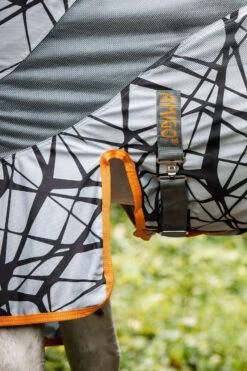 Lösung sein, um Pferde vor Insekten zu schützen. Die übereinanderlaufenden schwarzen Linien auf grauem Hintergrund kreieren für die Augen von Insekten eine optische Täuschung. Die Form des Pferdes wird dadurch unterbrochen und Insekten können es somit nicht als Ziel identifizieren.