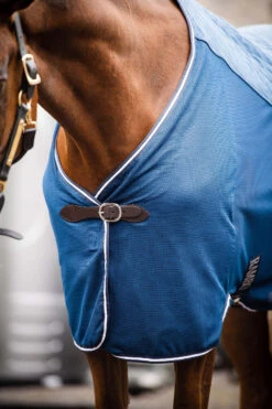 Höchsten Komfort zu bieten. Der obere Teil der Decke ist konturiert geschnitten und abgesteppt. Dies bietet feuchtigkeitsregulierende Eigenschaften und hält den Pferderücken während des Transports warm. Die Seiten aus perforierten Netzmaterial bieten maximale Luftziruklation, um ein Überhitzen zu vermeiden.