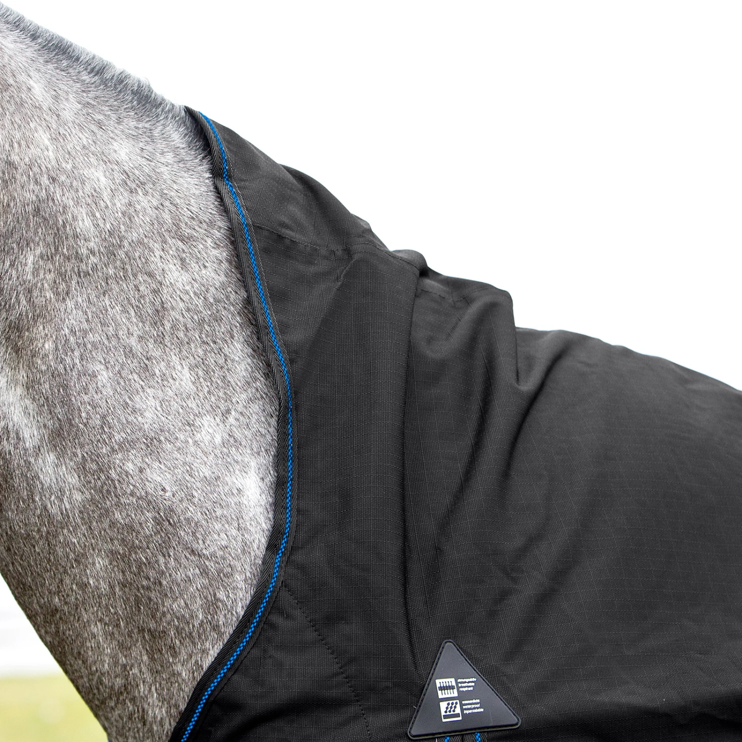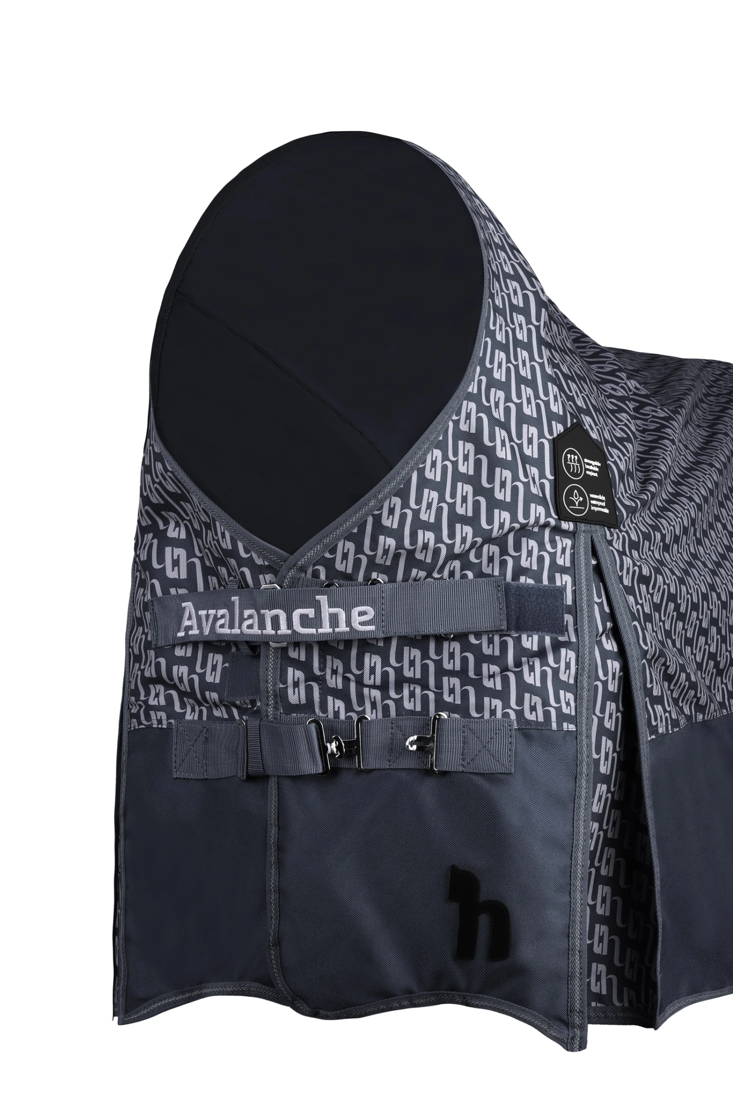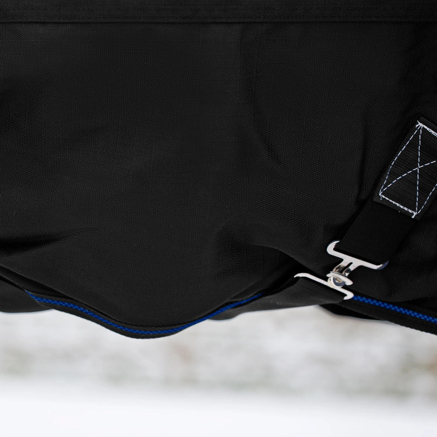 Diese Avalanche Weidedecke hat einen High Neck Schnitt für zusätzlichen Schutz. Die hohen Gehfalten schränken die Bewegungsfreiheit deines Pferdes nicht ein. Kreuzgurte, zwei Frontschnallen und elastische Beinschnüre halten diese Decke an ihrem Platz. Der große Schweiflatz bietet zusätzlichen Schutz.