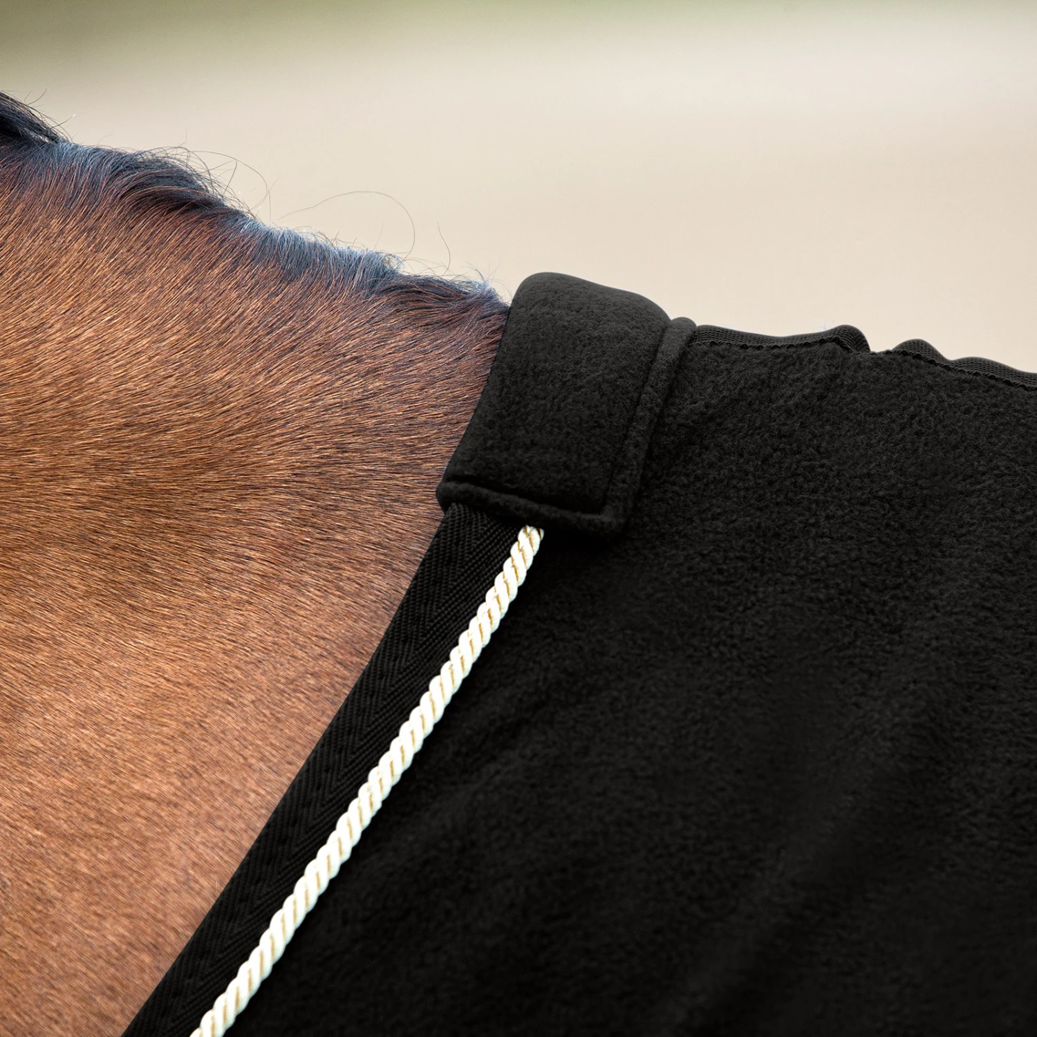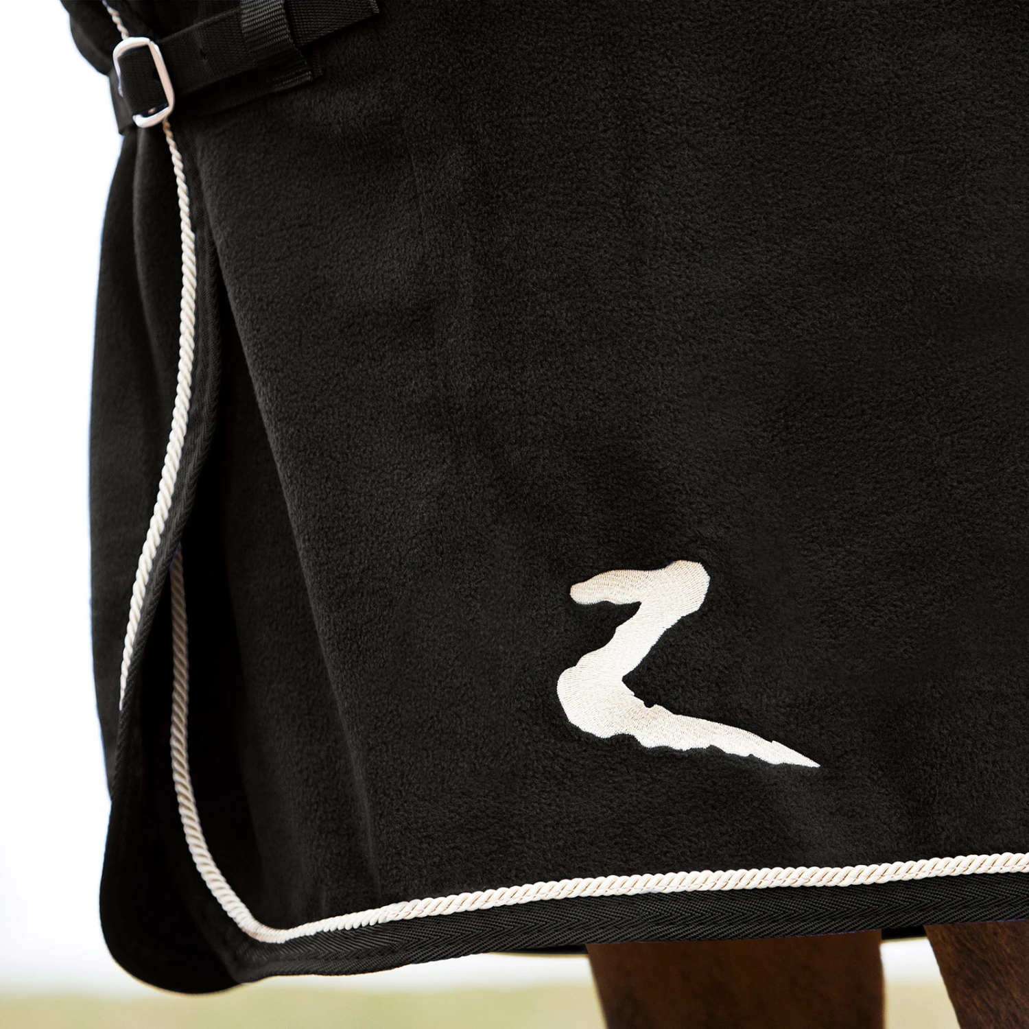 Eine zuverlässige Decke ist ein Must Have für das Turniergelände und die Transporte dorthin. Diese Fleece Abschwitzdecke sorgt mit edlen Paspeln und Kordeln am Saum für einen klassischen Look, ohne teuer zu sein. Sie sieht schön aus und hält dein Pferd warm. Verwende die Decke alleine oder halte deine Ausrüstung damit frisch und sauber, während du auf deinen Einsatz auf dem Turnier wartest.