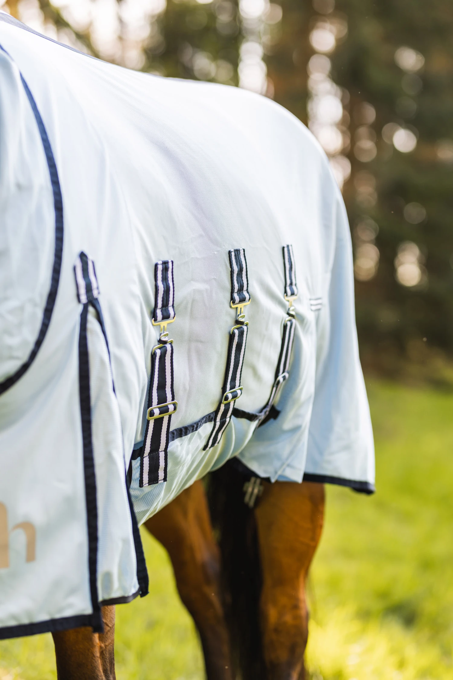 Der Bauchlatz dieser Combo Fliegendecke sorgt für noch mehr Schutz vor diesen lästigen Insekten im Sommer. Der Bauch- und abnehmbare Halsschutz sorgt für kompletten Schutz vor UV-Strahlen und Insekten. Kühlendes Mesh Gewebe machen diese Decke ideal für friedvolles Grasen an heißen Sommertagen.