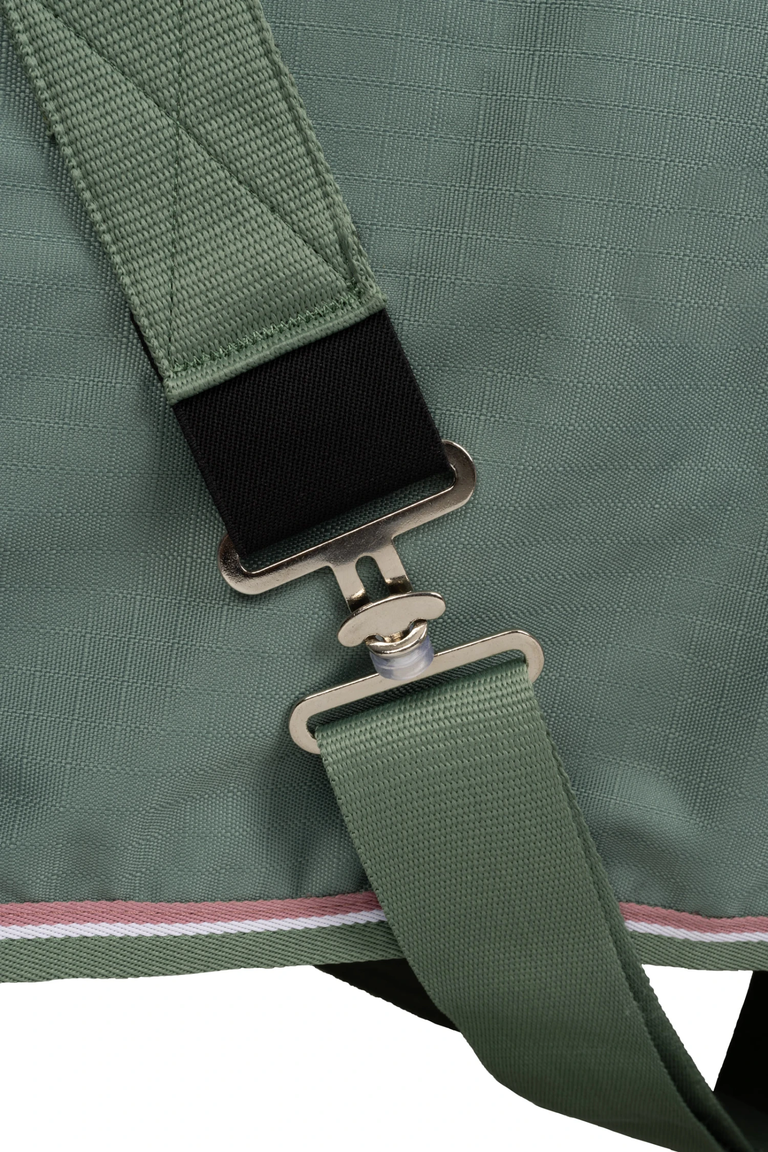Diese leichte Weidedecke mit Fleecefutter ist aus einem wasserdichten, atmungsaktiven Stoff gefertigt. Die gute Passform im Hals- und Schulterbereich macht sie bequem, und die hohen Gehfalten lassen viel Bewegungsfreiheit zu. Die vorderen Schnallen, die Kreuzgurte, die elastischen Beingurte mit Druckknöpfen und die Schweifschnur sichern die Decke an ihrem Platz. Reflektierende Akzente erhöhen die Sichtbarkeit deines Pferdes in den dunkleren Monaten.