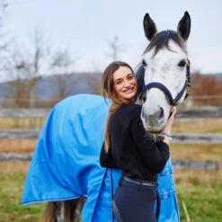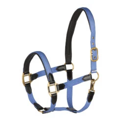 Dieses Halfter besteht aus weichem gewebtem Material. Es ist mit Lederakzenten an den Schnallen für zusätzliche Stabilität verstärkt. Das weiche Lederfutter an Nase und Genick ist langlebig und angenehm auf der Haut deines Pferdes. Verschiedene Farbvariationen passen perfekt in deine Reitausrüstung. Der Karabinerhaken schließt sicher und satinierte goldene Beschläge komplettieren den Look.
