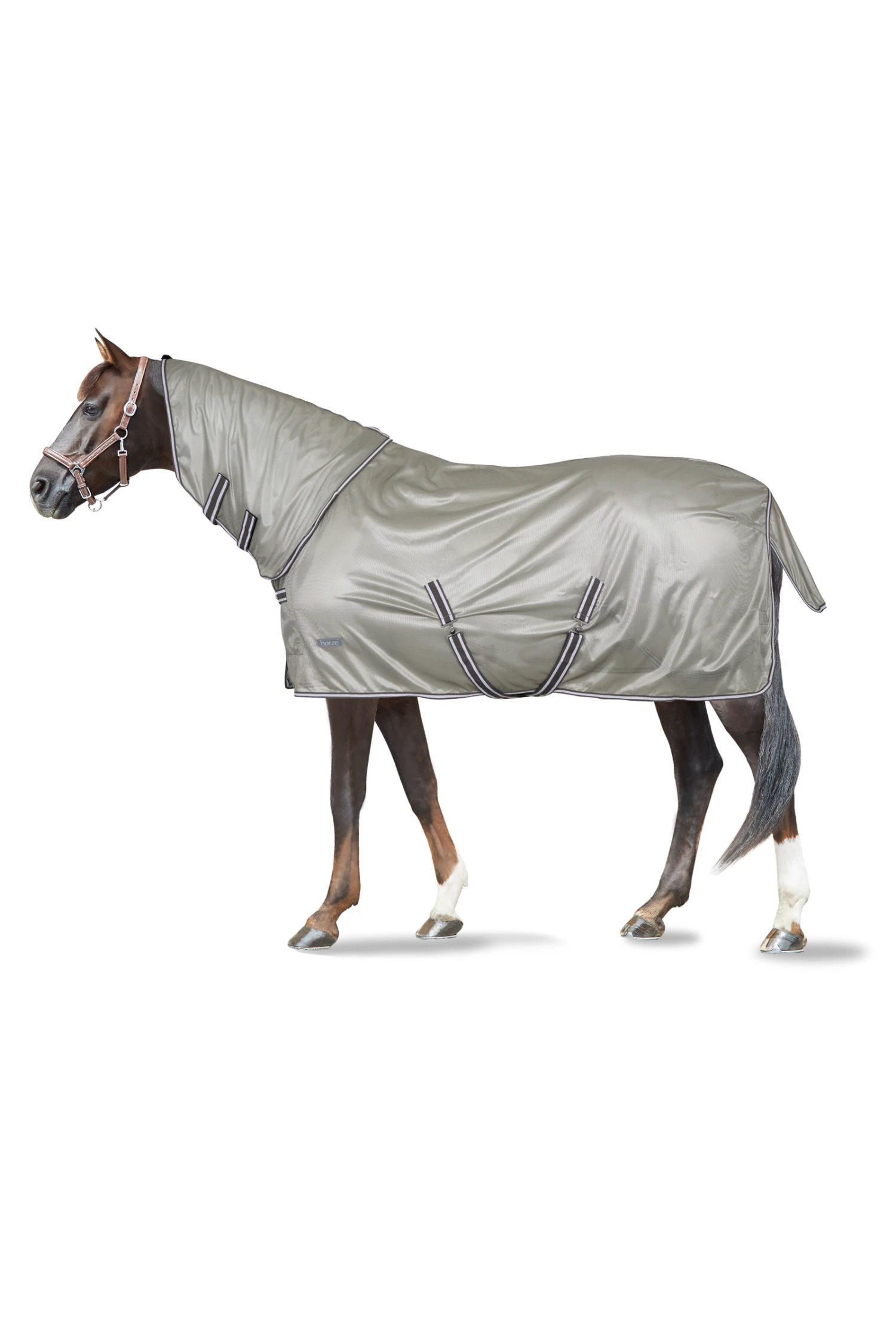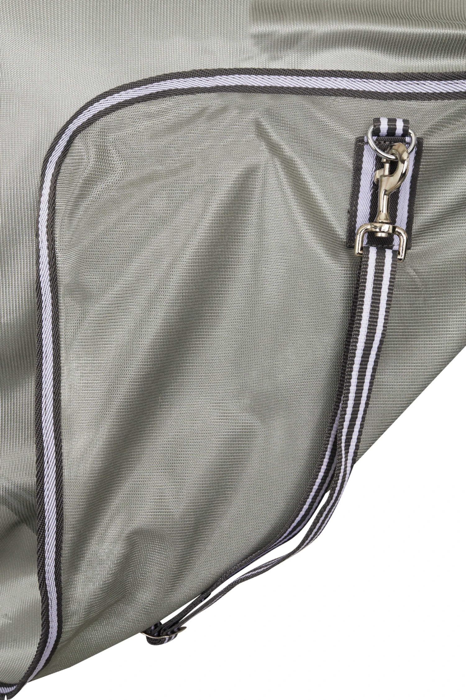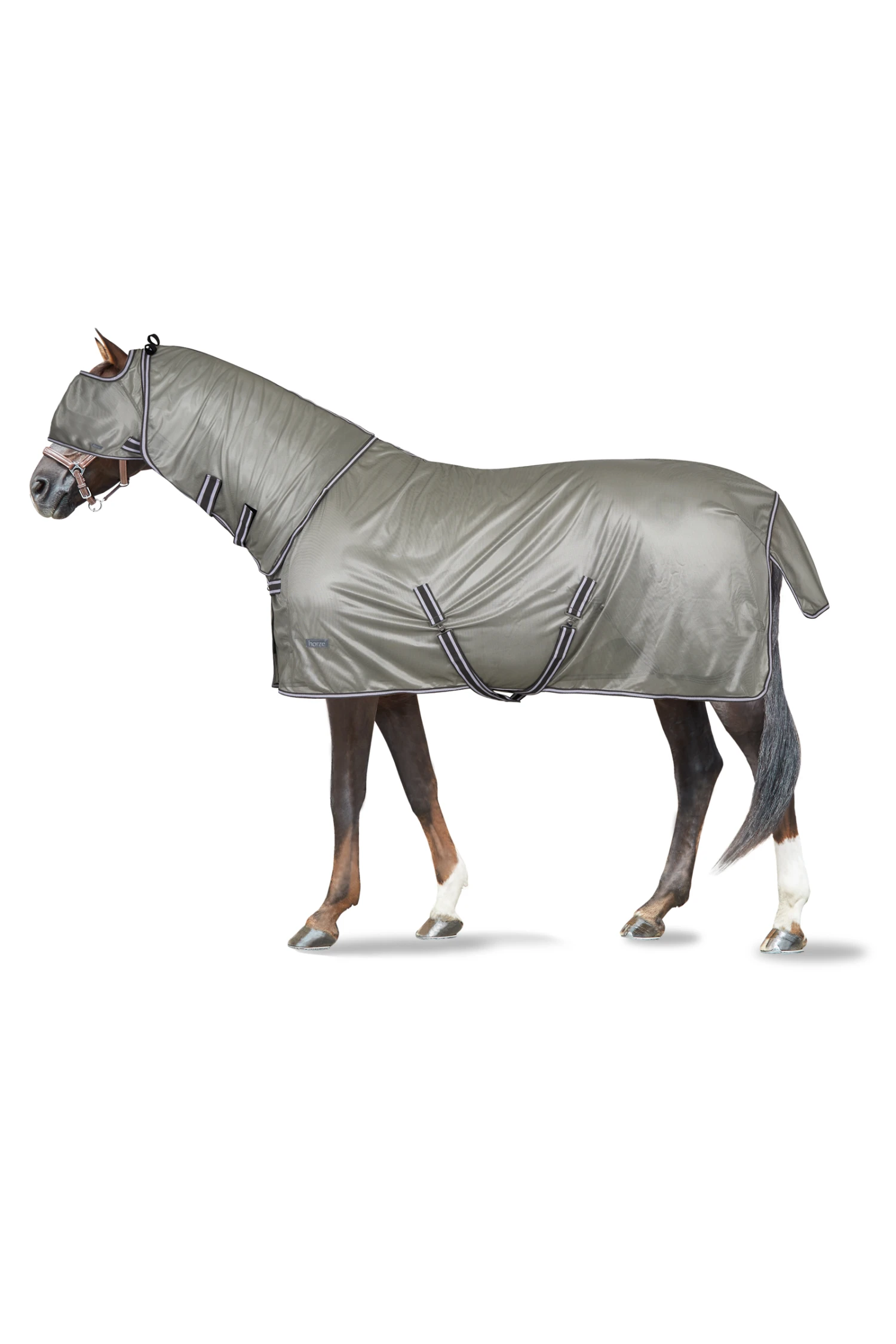 Dieses Fliegenschutz Set bedeckt Ihr Pferd von Kopf bis Schweif und wird die lästigen Fliegen fernhalten. Die Decke hat ein gestreiftes Muster an den Gurten und der Einfassung. Starker Einzel-Brustverschluss, Kreuzbegurtung und Schnallen, um das Halsteil mit der integrierten Schutzmaske anzubringen. Dieses Set wird Ihr Pferd schützen und es gleichzeitig kühlen, und das zu einem günstigen Preis.