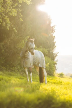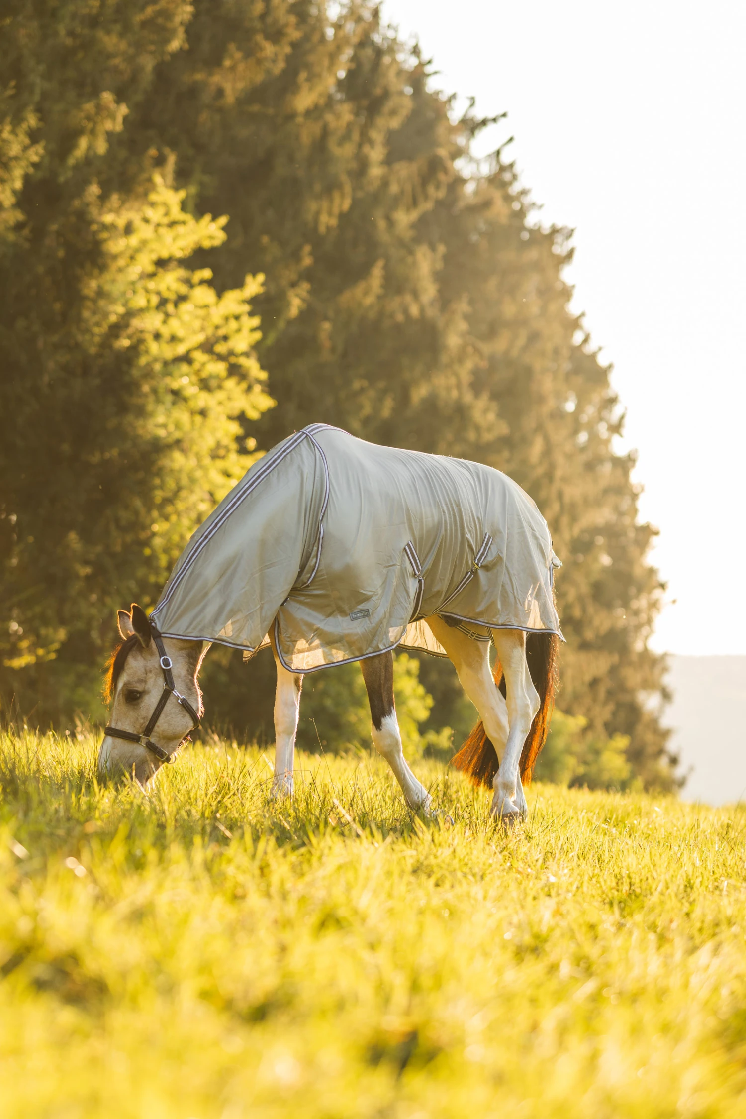Dieses Fliegenschutz Set ist wie eine RĂĽstung, die Ihr Pferd vor den Plagen des Sommers schĂĽtzt.