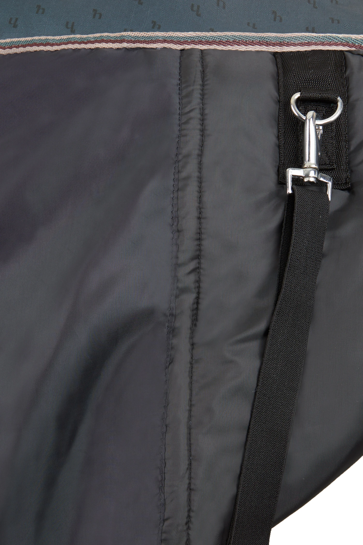 Die Horze Leighton Regendecke ist aus wasserdichtem Material mit warmer Füllung hergestellt. Der doppelte Frontverschluss, die Kreuzgurte und der Schweiflatz verhindern Verrutschen. Die hohen Gehfalten schränken die Bewegungsfreiheit deines Pferdes nicht ein. Der Horze-Logoaufdruck sorgt für einen klassischen Stil. Kombiniere diese Decke mit dem Rest unserer Horze Leighton Teens Kollektion für einen kompletten Look!