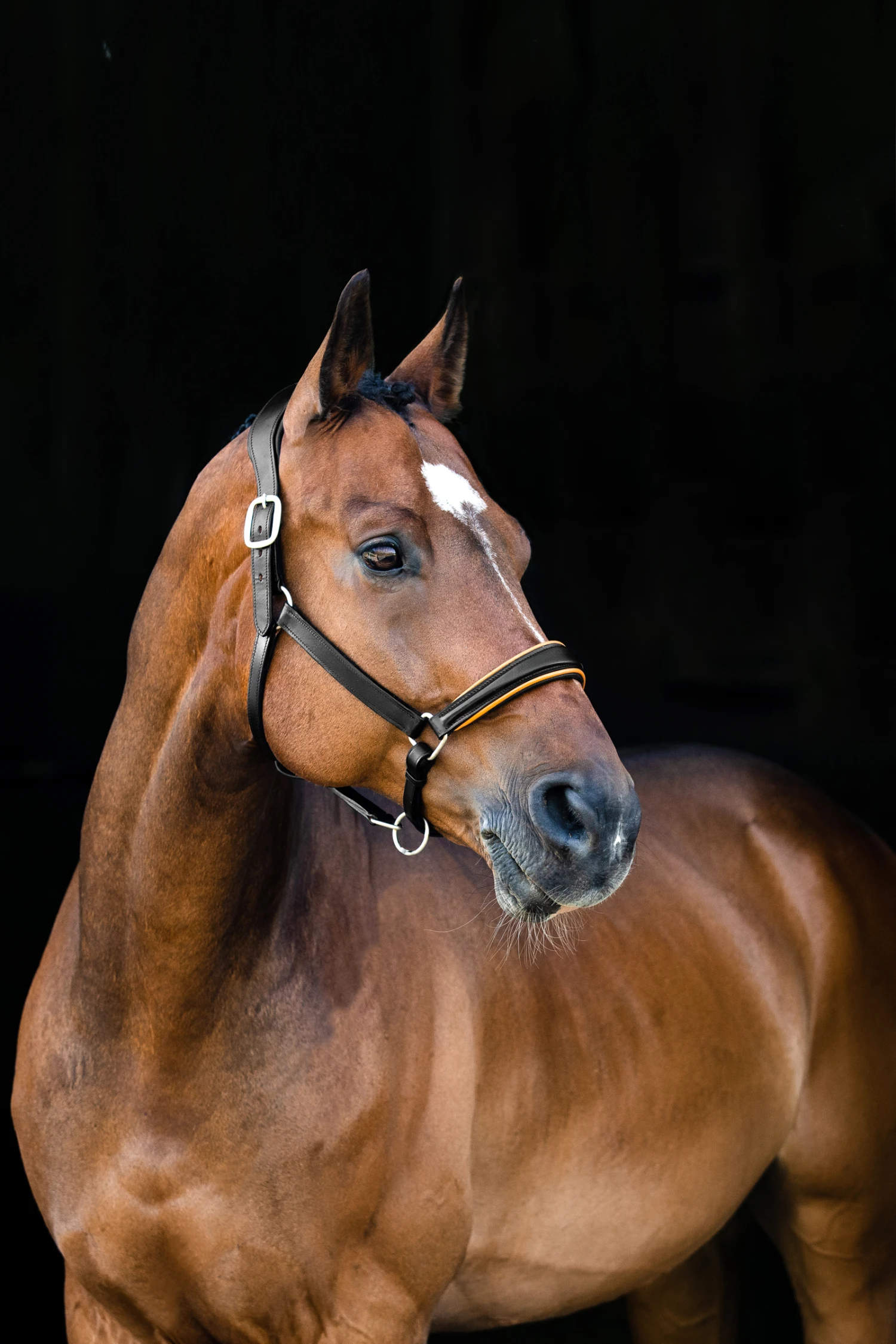 Ein anatomisch geformter Nackenriemen, ein breiter, geschwungener Nasenriemen und ein Y-förmiges Genickstück verleihen diesem Halfter die Ästhetik einer Trense. Das Horze Louis Lederhalfter ist ideal, wenn du auf Turniere gehst oder immer dann, wenn dein Pferd richtig toll aussehen soll. Das luxuriöse Lederhalfter hat silberfarbene Beschläge, einen Druckknopfverschluss am Kehlriemen und ist am Nasenriemen und ist am Genickstück komplett verstellbar.