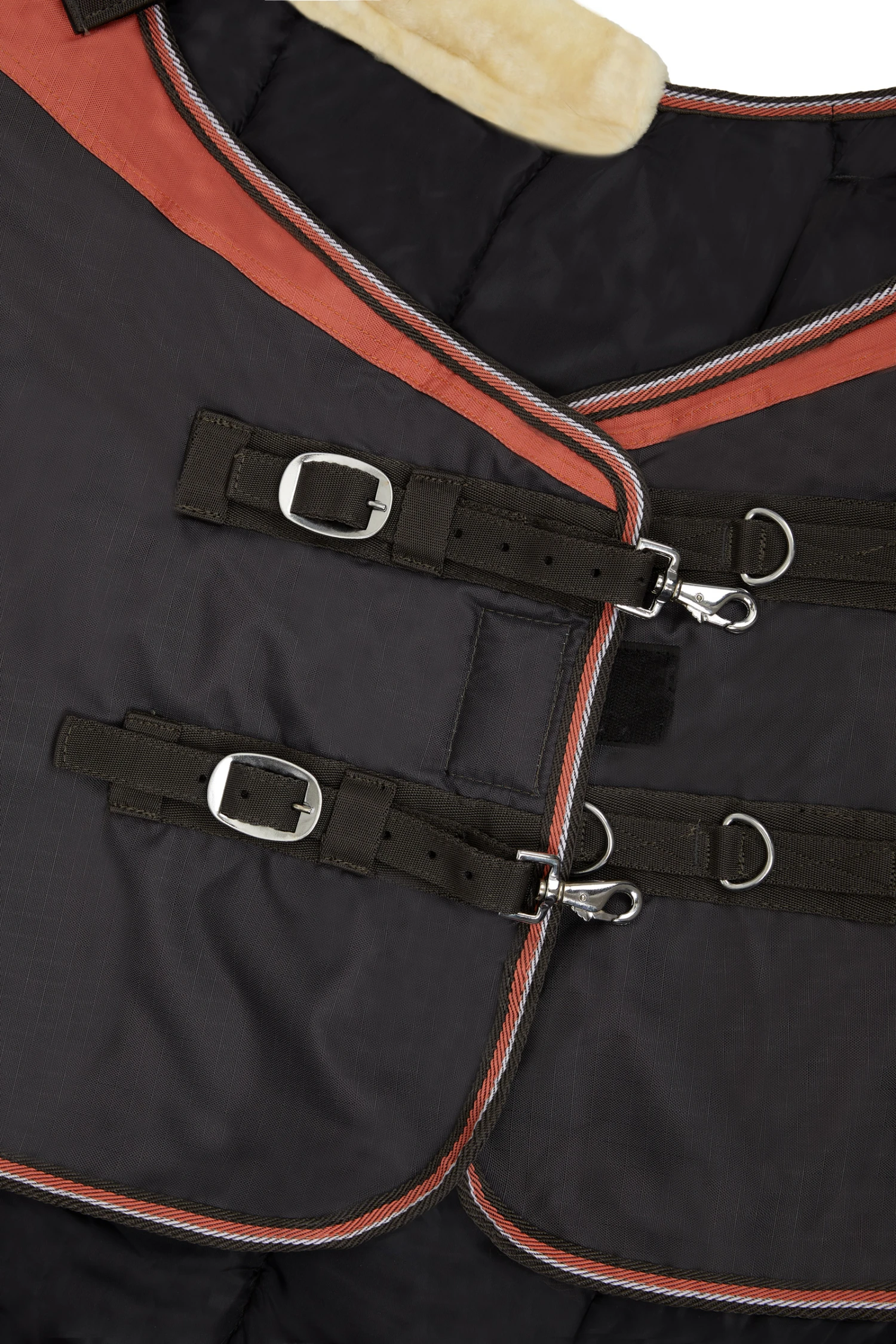 Unsere Horze Lucerne Regendecke hält dein Pferd trocken und das weiche Fleecefutter ist warm und bequem. Elastik hält die Decke an ihrem Platz und sorgt für die perfekte Passform. Doppelte Frontschnallen und Kreuzgurte schließen sicher. Ein Halsteil kann am Klettverschluss angebracht werden. Das sportliche Design lässt sich leicht in deine Reitausrüstung integrieren.