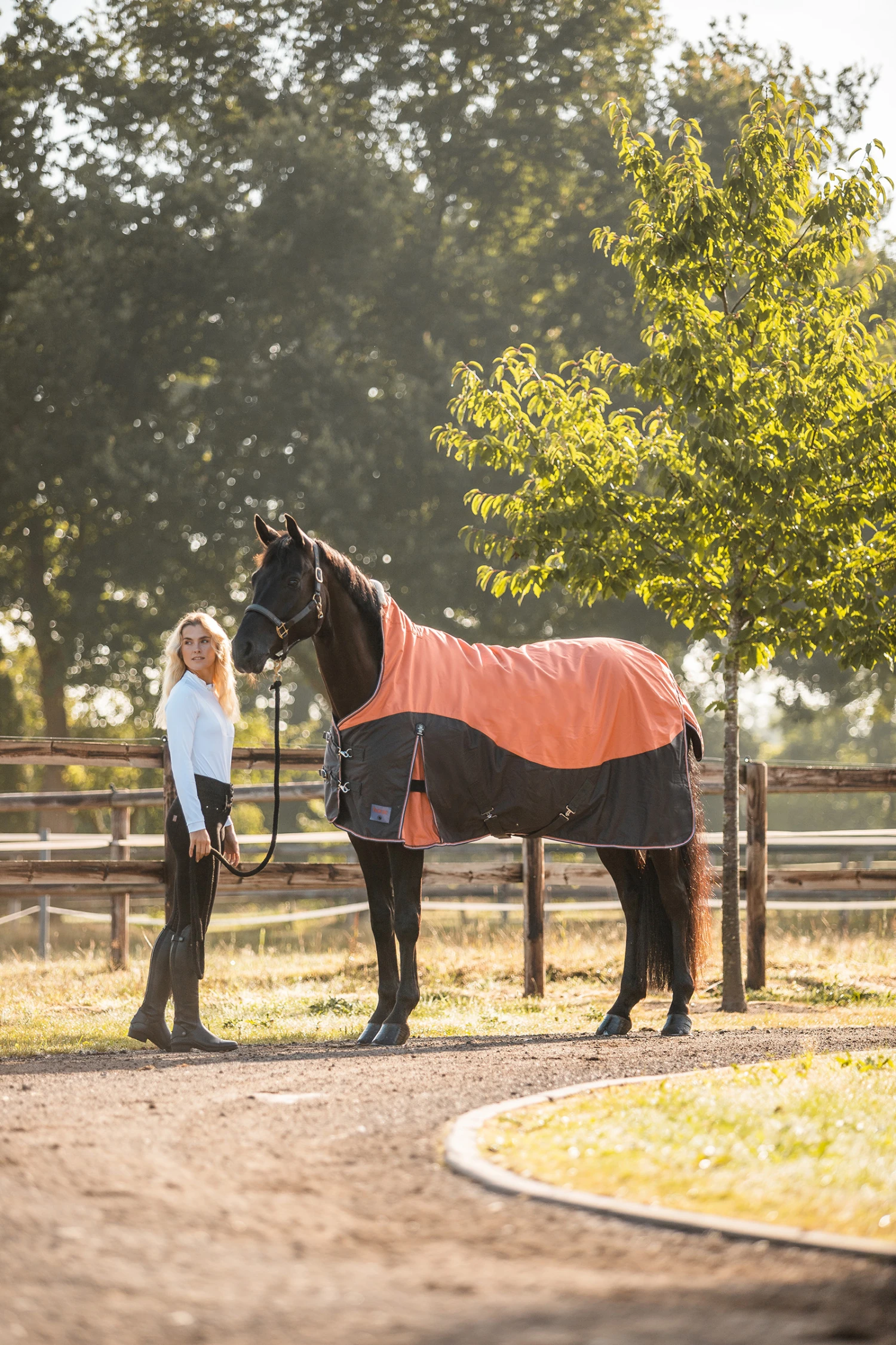 Unsere Horze Lucerne Regendecke hält dein Pferd trocken und die Füllung ist warm und bequem. Elastik hält die Decke an ihrem Platz und sorgt für die perfekte Passform. Der hohe Hals mit Kunstfell bringt zusätzlichen Komfort und Schutz. Doppelte Frontschnallen und Kreuzgurte schließen sicher. Ein Halsteil kann am Klettverschluss angebracht werden. Das sportliche Design lässt sich leicht in deine Reitausrüstung integrieren.