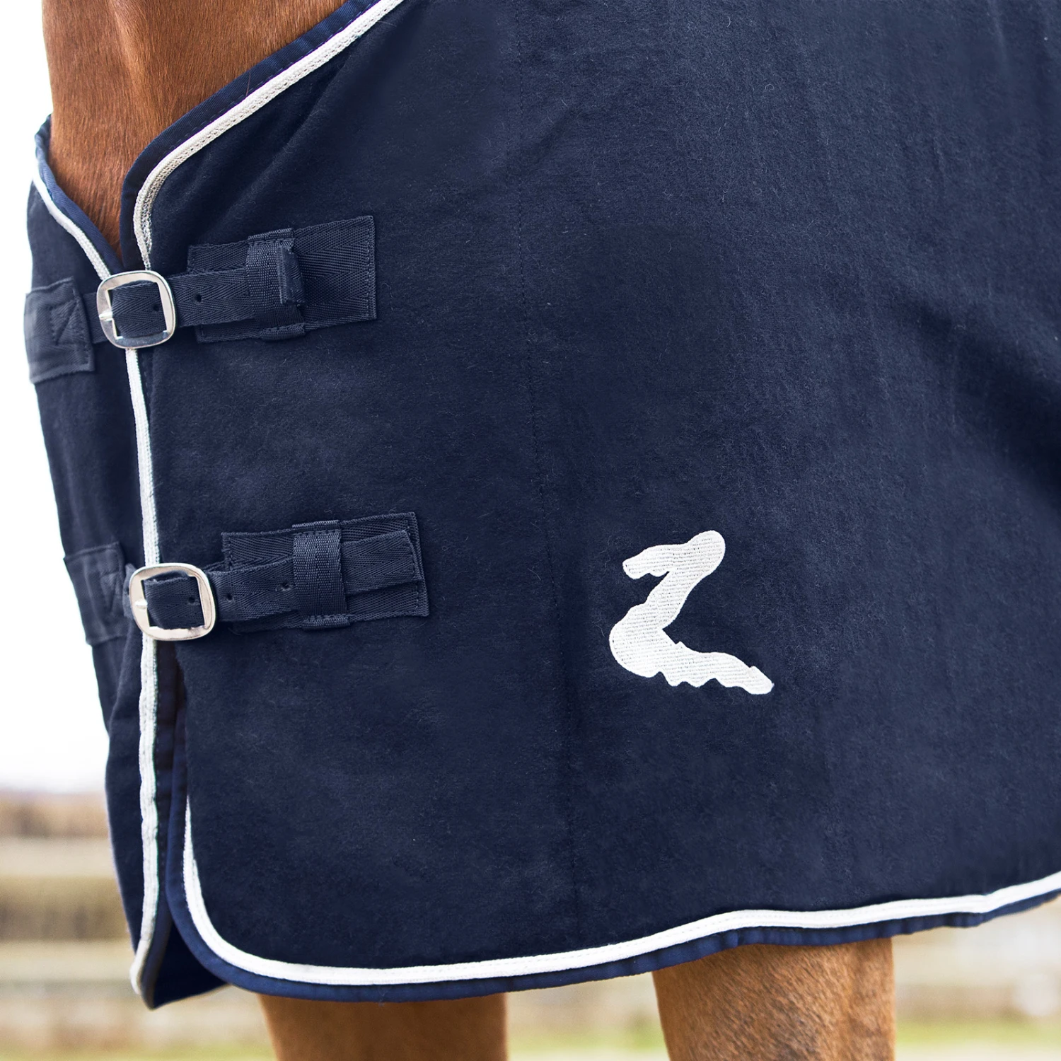 Dicke, satte Wolle mit vielen silbernen Akzenten, machen diese Decke zur perfekten Wahl in der Öffentlichkeit. Die schwere Kordel an der Hüfte ist ein klassisches Design und ergänzt die schöne Silberpaspel und das Z-Logo. Die Decke wird Ihre erste Wahl für Transporte sein, da Ihr Pferd erfrischt und gut aussehend ankommen wird, wenn es bei der nächsten Veranstaltung ausgeladen wird. Atmungsaktive Wolle bedeutet, dass es warm bleibt, aber nicht überhitzt. Die strapazierfähige Konstruktion sieht zart aus, ist aber robust und lässt sich gut waschem, um Saison für Saison zu bestehen.