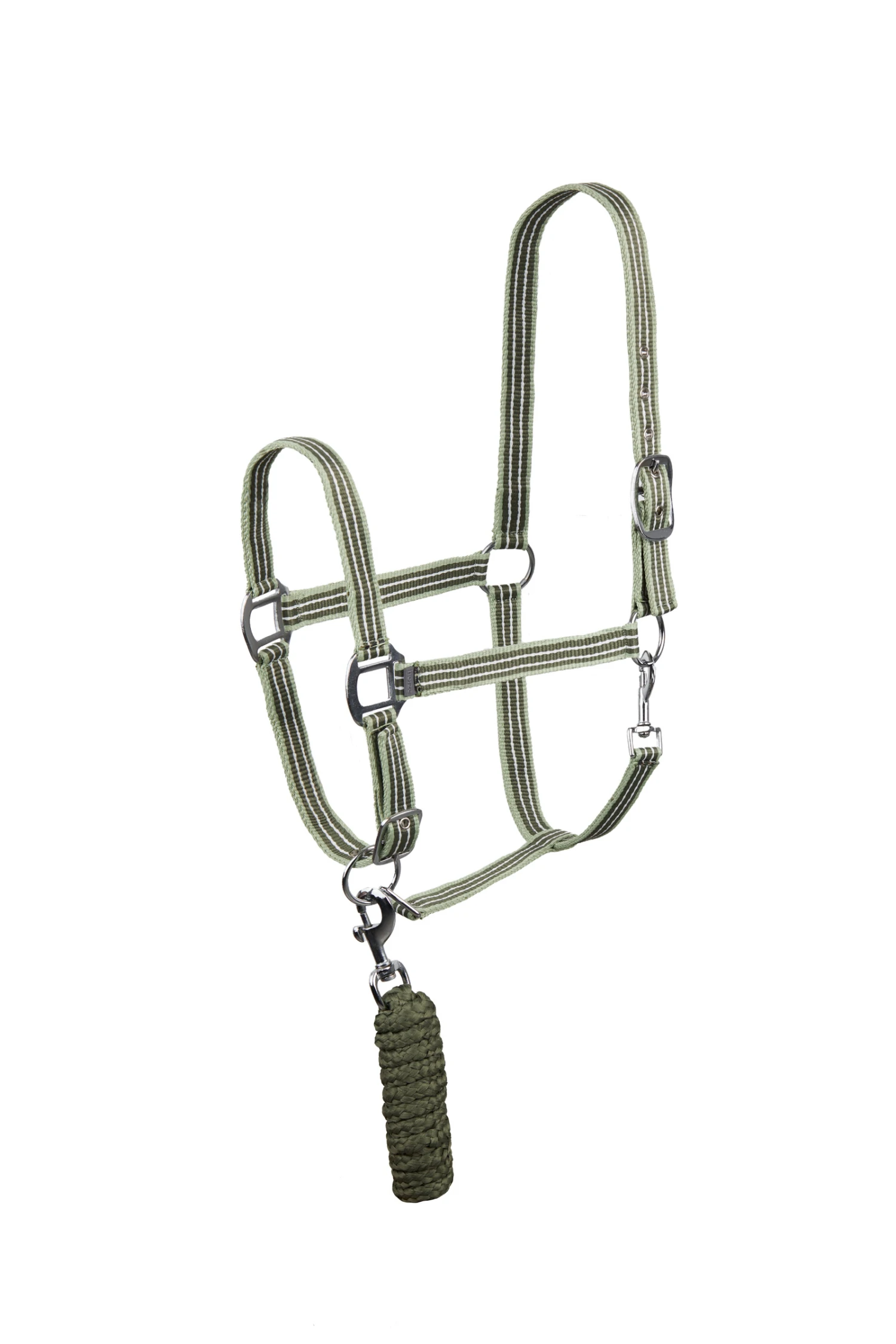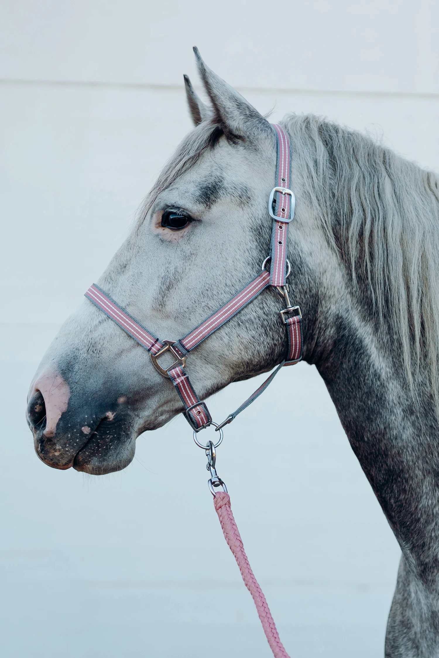 Gestreiftes Halfter in sanften Farben mit passendem Führstrick.