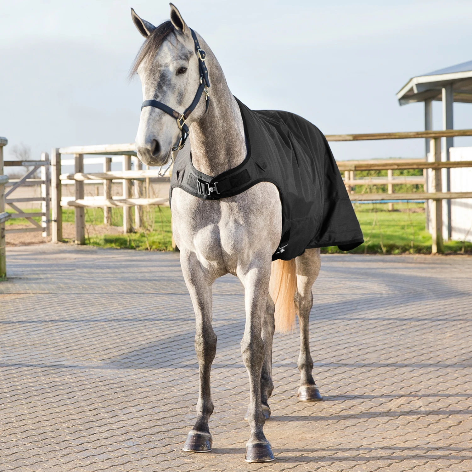 Viele Ställe haben den Luxus einer Führanlage, um Pferde nach anstrengender Arbeit oder im Alltag abzukühlen. Viele Pferde benötigen zusätzlichen Schutz und diese einzigartig gestaltete Decke bietet Schutz, während das vordere Ende des Pferdes durch das Gewebe nicht eingeschränkt werden kann. Das weiche Gefühl dieser warmen, dicken Decke macht es zu einem Vergnügen sie zu verwenden und anzuschauen.