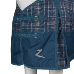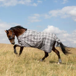 Unsere Horze Nevada Weidedecke ist aus strapazierfähigem, wasserdichtem Material im Karodesign gefertigt. Weiches Kunstfell am Widerrist bringt Komfort. Zwei Frontschnallen, Kreuzgurte, der Schweiflatz und die Beinschlaufen halten die Decke an ihrem Platz. Hohe Gehfalten erhalten die Bewegungsfreiheit deines Pferdes. Ein Halsteil lässt sich mit D-Ringen leicht befestigen. Auch mit Fleece-Futter erhältlich (#24594).