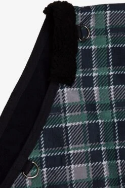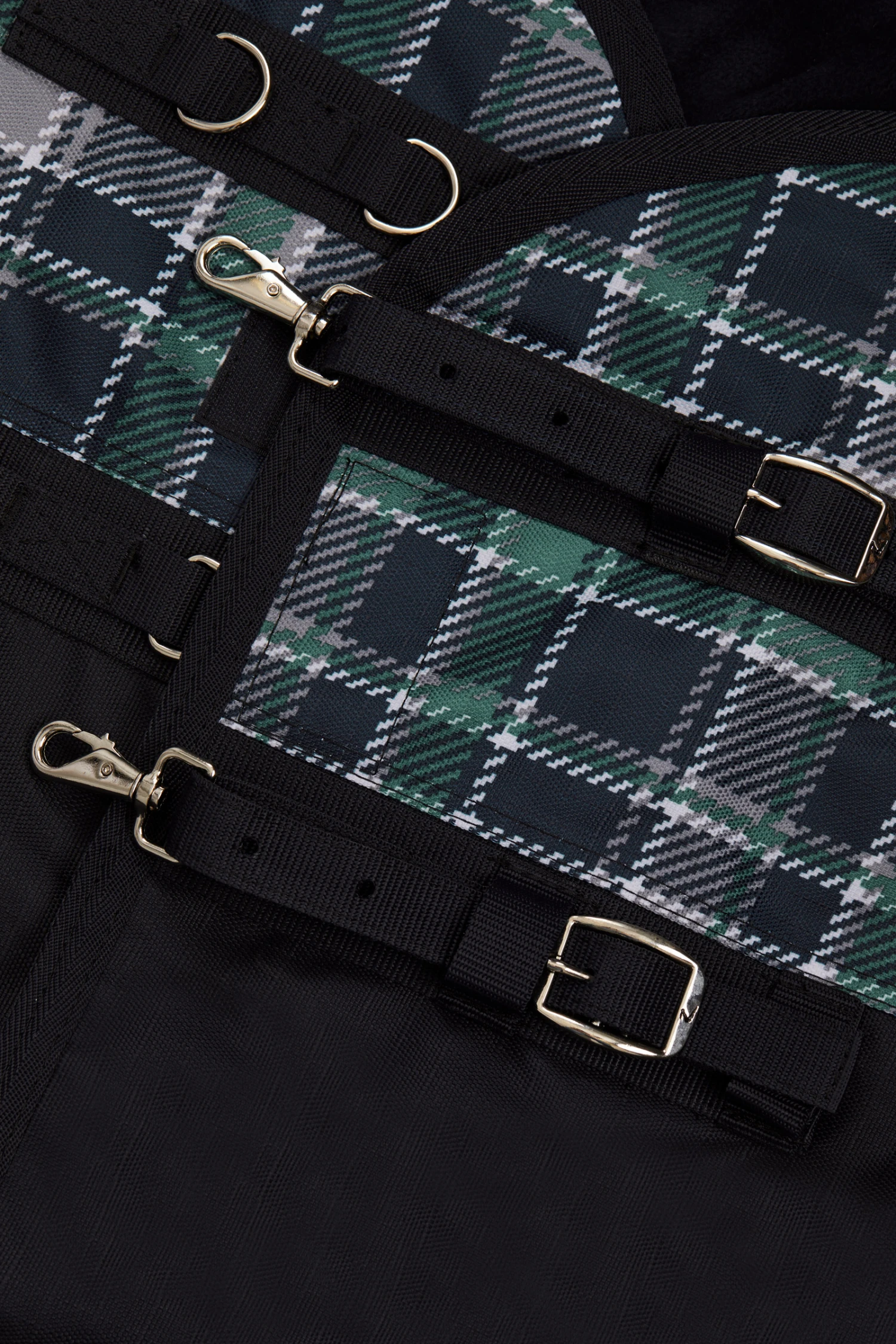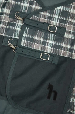 Unsere Horze Nevada Weidedecke ist aus strapazierfähigem, wasserdichtem Material im Karodesign gefertigt. Weiches Kunstfell am Widerrist bringt Komfort. Zwei Frontschnallen, Kreuzgurte, der Schweiflatz und die Beinschlaufen halten die Decke an ihrem Platz. Hohe Gehfalten erhalten die Bewegungsfreiheit deines Pferdes. Ein Halsteil lässt sich mit D-Ringen leicht befestigen. Auch ohne Fleece-Futter erhältlich (#24575).