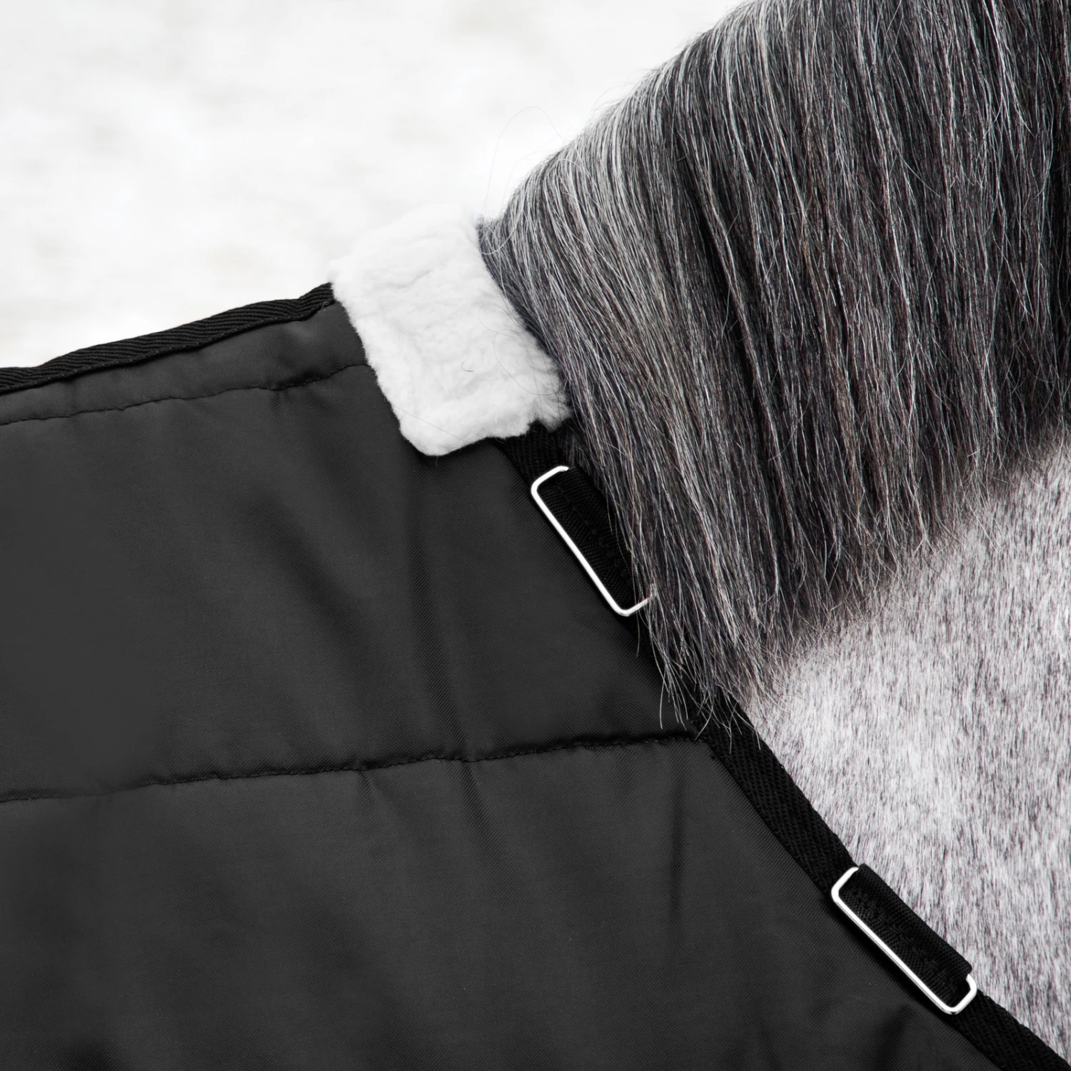 Ein weiches Fleecepolster am Widerrist ist nur eines der schönen Details dieser Stalldecke. Die weiche Steppung schützt vor Kälte und Zugluft. Die Decke ist einfach aufzulegen und abzunehmen. Perfekt für kalte Tage.