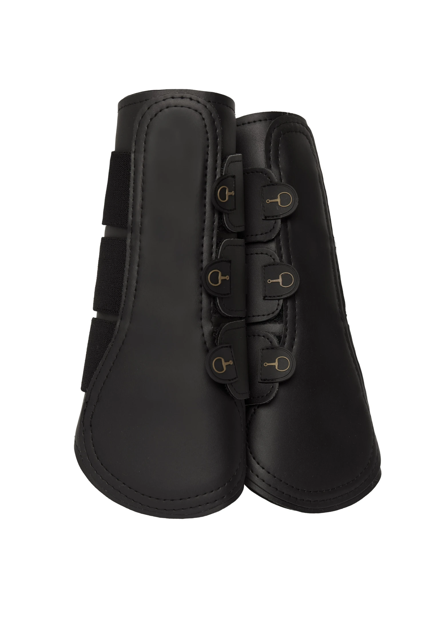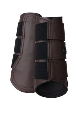 Die Horze Noir Gamaschen sind aus robustem Kunstleder gefertigt und mit Neopren gefüttert. Starke Klettverschlüsse schließen sicher und Zuglaschen erleichtern die Handhabung. Kombiniere sie mit den Horze Noir Hufglocken für einen kompletten Look!