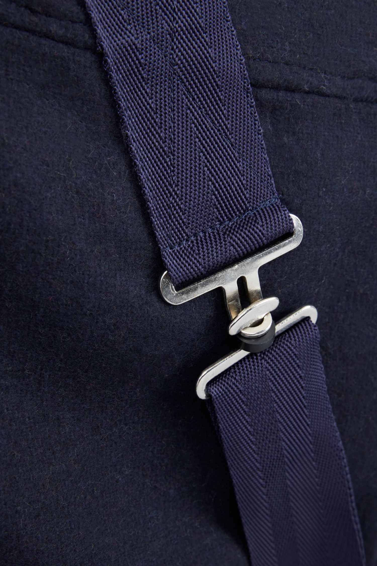 65% Wolle, 35% Polyester. (Bitte beachte: Auf dem eingenähten Etikett steht 100% Polyester, was nicht korrekt ist!).