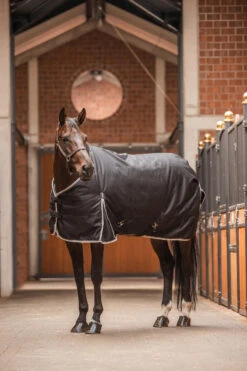 Unsere Horze Sudbury Decken bestehen aus zwei Teilen, die miteinander kombiniert werden können. Die wasserdichte Decke schützt dein Pferd vor Regen, während die Unterdecke es warm hält. Die 100 g schwere Regendecke ist mit zwei Frontschnallen, Kreuzgurten und Beinschnüren ausgestattet, die sie an ihrem Platz halten. Hohe Gehfalten schränken die Bewegungsfreiheit deines Pferdes nicht ein. Sie kann auch alleine getragen werden. Der Liner besteht aus einer 200 g Füllung. Er lässt sich vorne sicher verschließen und du kannst ihn einfach an der Regendecke befestigen, um an kalten Tagen einen 300g-Regenschutz zu haben.