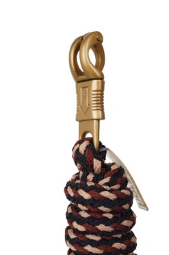 Passender Führstrick für das Horze Terrazzo Satin Halfter (#22348). Strapazierfähiger Stoff mit eleganten Metallbeschlägen in satinierter Goldfarbe und einer transparenten Logolasche. Auch mit Karabiner erhältlich (#22658).