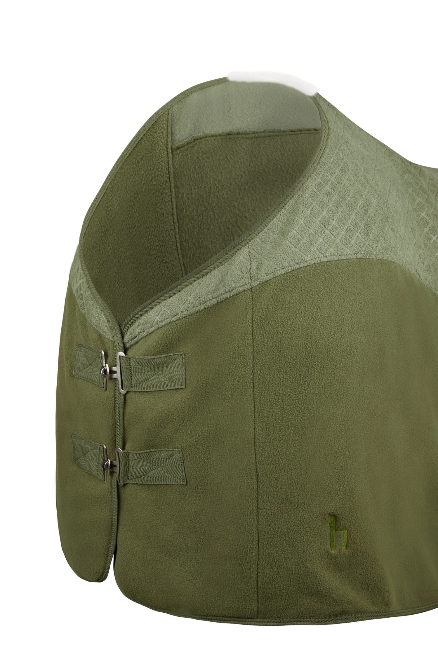 Unsere Horze Victoria Decke bringt einen Hauch von Luxus in dein Sattelzeug. Sie besteht aus superweichem Fleecestoff mit kuscheligem Kunstfell am Widerrist. Zwei Schnallen an der Vorderseite halten die Decke an Ort und Stelle, während die Kreuzgurte und die Schweifkordel dafür sorgen, dass sie nicht verrutscht. Silberne Satinbeschläge vervollständigen den eleganten Look.
