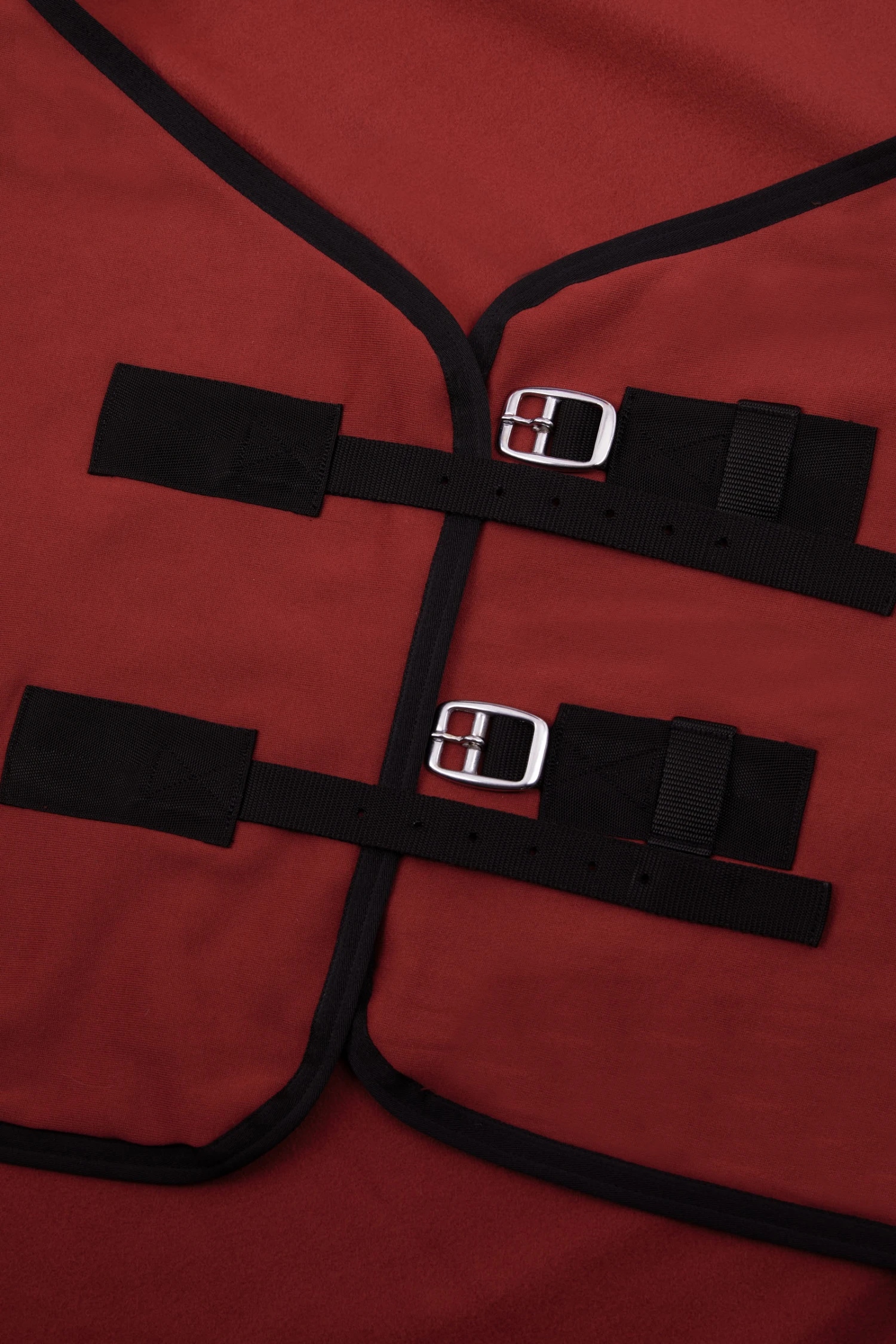 Diese Decke besteht aus super weichem Fleece und ist in einer Vielzahl von Farben verfĂĽgbar. Die doppelte Schicht am Widerrist verhindert Reibung und zwei Frontschnallen halten die Decke an ihrem Platz.