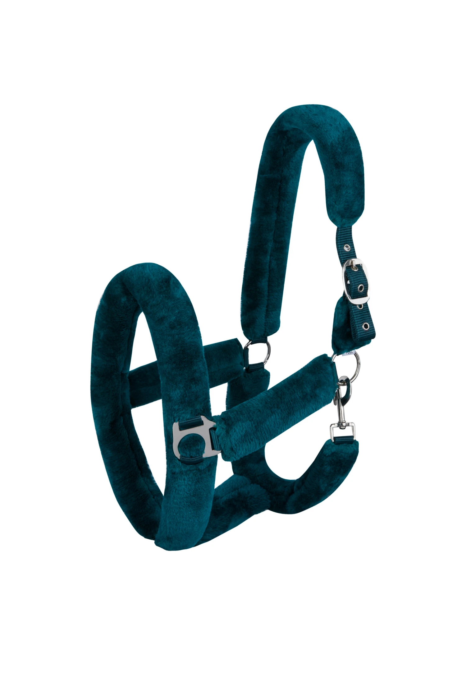 Dieses Halfter ist komplett mit super weichem Kunstfell besetzt, das sich am Pferdekopf gemütlich anfühlt. Verstellbare Schnallen sorgen für die perfekte Passform und der Karabinerhaken schließt sicher. Wähle aus vielen verschiedenen Farben, was am besten in deine Reitausrüstung passt.