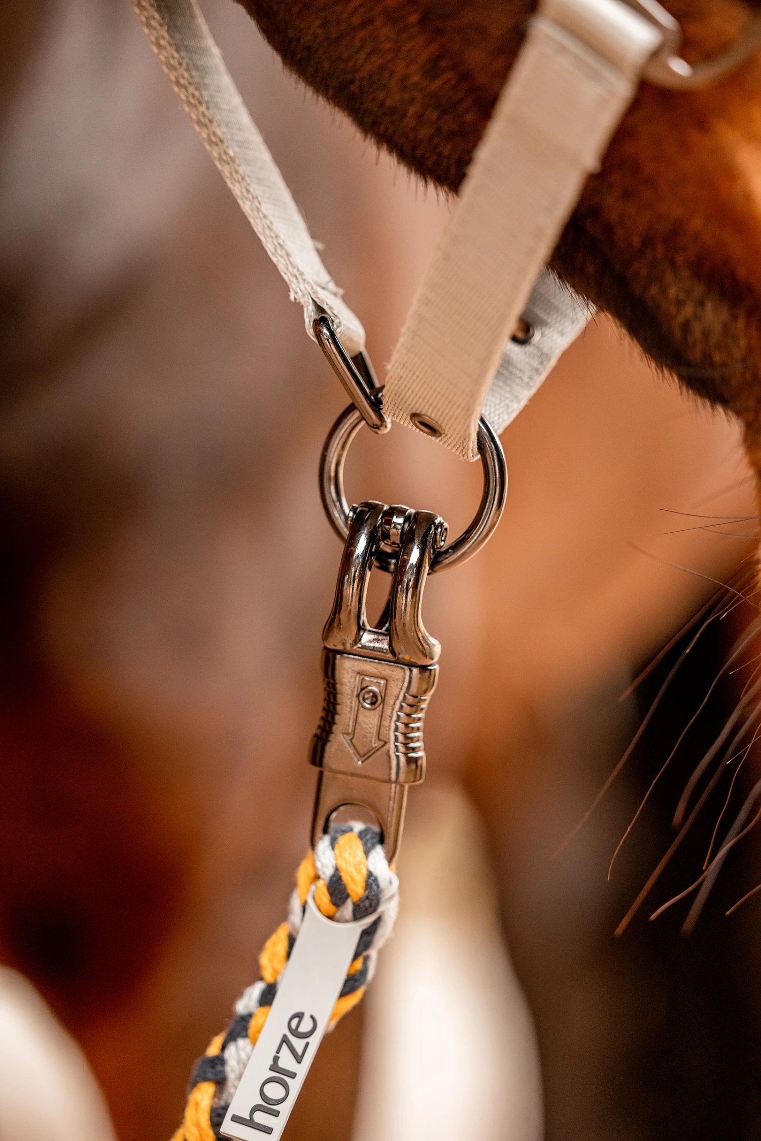 Unser Horze Wicklow Führstrick ist aus weichem, geflochtenem Seil gefertigt. Ein starker Panikhaken schließt sicher. Kombiniere den Strick mit dem Rest unseres Horze Wicklow Sortiments für einen kompletten Look!