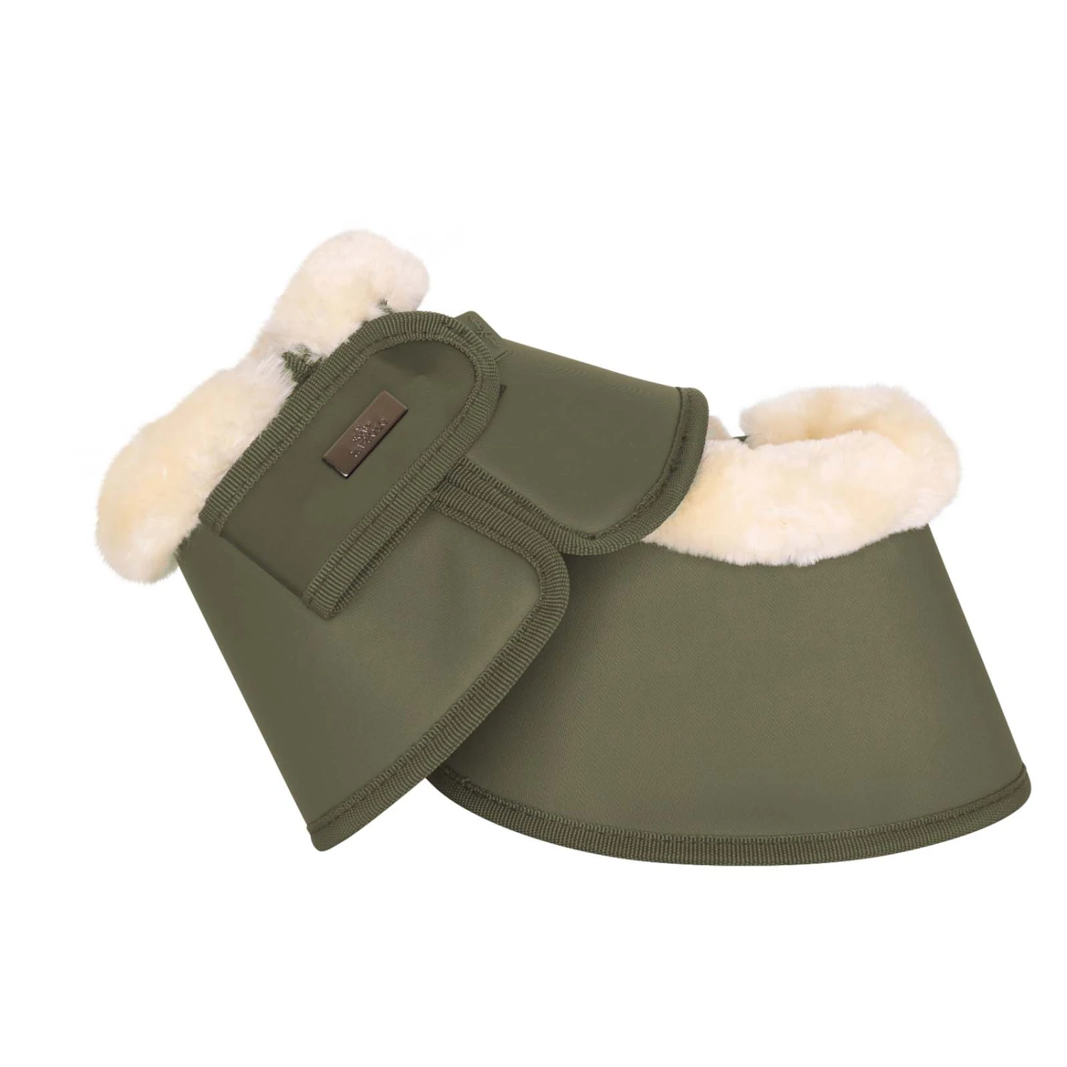 Hufglocken aus PU-Material mit einem Verschluss aus Fake-Memory-Material. Die Springglocken haben ein Futter aus Kunstpelz. Mit kleiner Metallplatte und Gummilabel am Verschlussriemen.