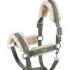 Elegantes Halfter mit weichem Kunstellpolster an Genick und Nase. Für einen perfekten Sitz kann das Halfter beidseitig sowie unten verstellt werden. Die feinen Beschläge sind Messing.
