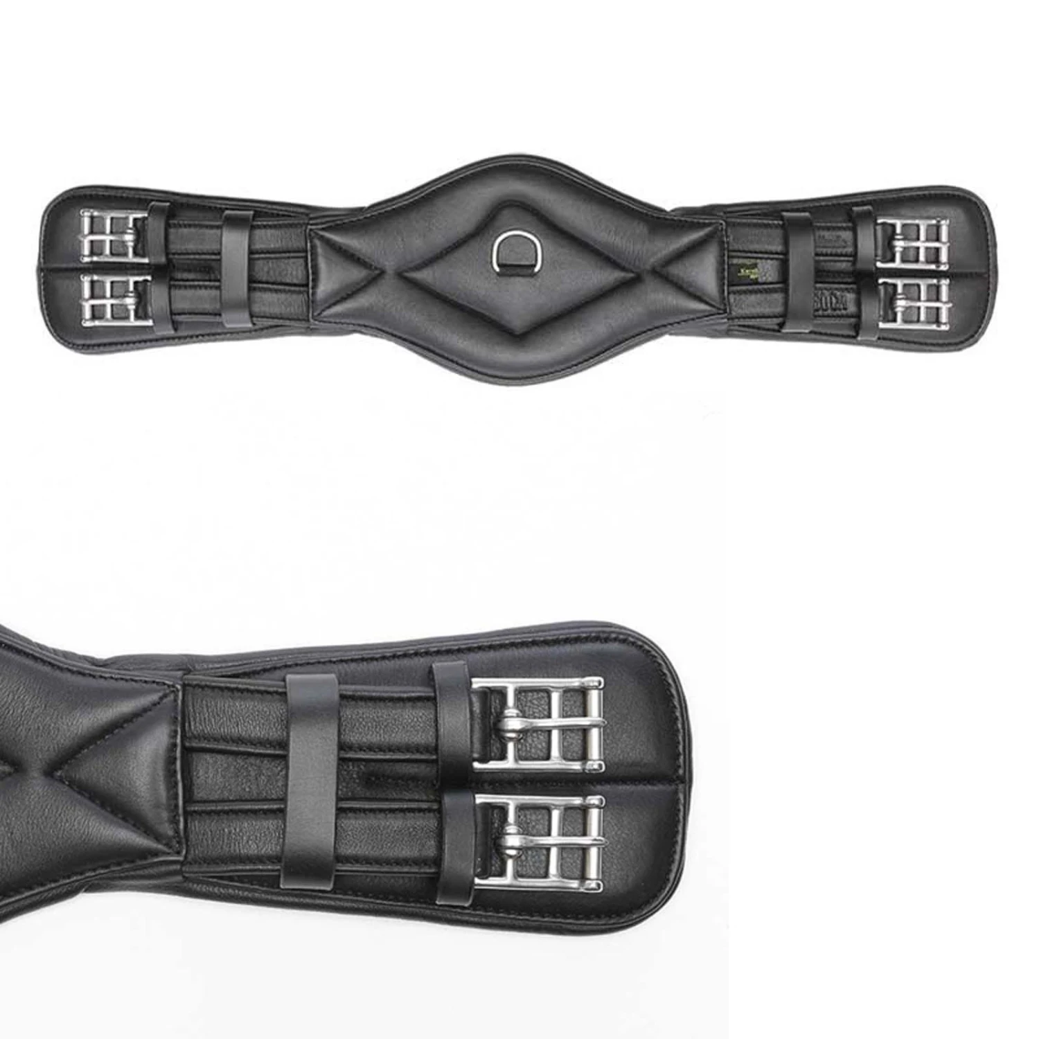 Lederkurzgurt aus speziellem pflanzlich gegerbten Softleder und Nylon-Einlage, mit schicken Ziernähten und extra breiter Auflagefläche in der Mitte zur besseren Druckverteilung. An einem D-Ringen lassen sich alle Hilfzügel oder Vorderzeuge befestigen. Ohne Elast.