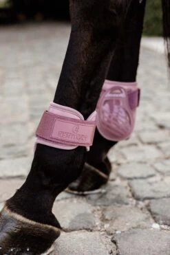 Die Jungpferde Streichkappen bestehen aus einer robusten TPU-Schale mit mehreren Belüftungslöchern und einer größeren Dreiecksnetzbelüftung. Der innere Teil der Gamaschen ist mit einer zusätzlichen TPU-Schicht verstärkt, um einem hohen Abrieb bei Bewegung der Hinterbeine standzuhalten. Die Streichkappen für junge Pferde sind für Springpferdeprüfungen für junge Pferde nach den FEI-Regeln zugelassen.