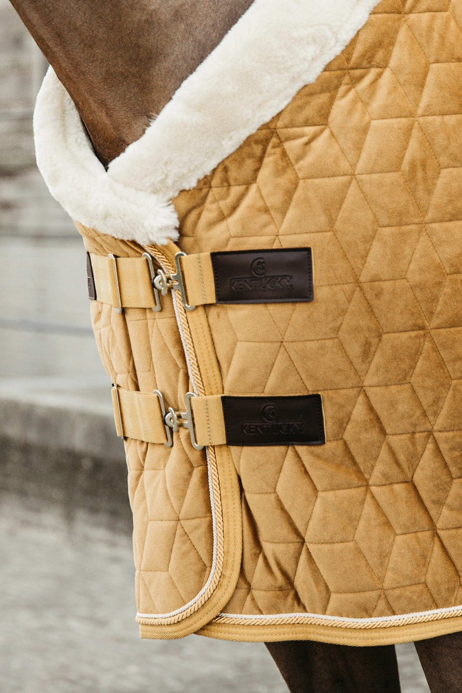 Die Kentucky Turnierdecke ist das Aushängeschild der Marke bei den Decken und auf der ganzen Welt äußerst beliebt. Da Kentucky für Innovation steht, haben sie eine Turnierdecke mit ihrem berühmten Samtstoff entwickelt. Durch den Samtstil und das elegante künstliche Lammfell am Hals ist die Samtdecke ein echter Hingucker!