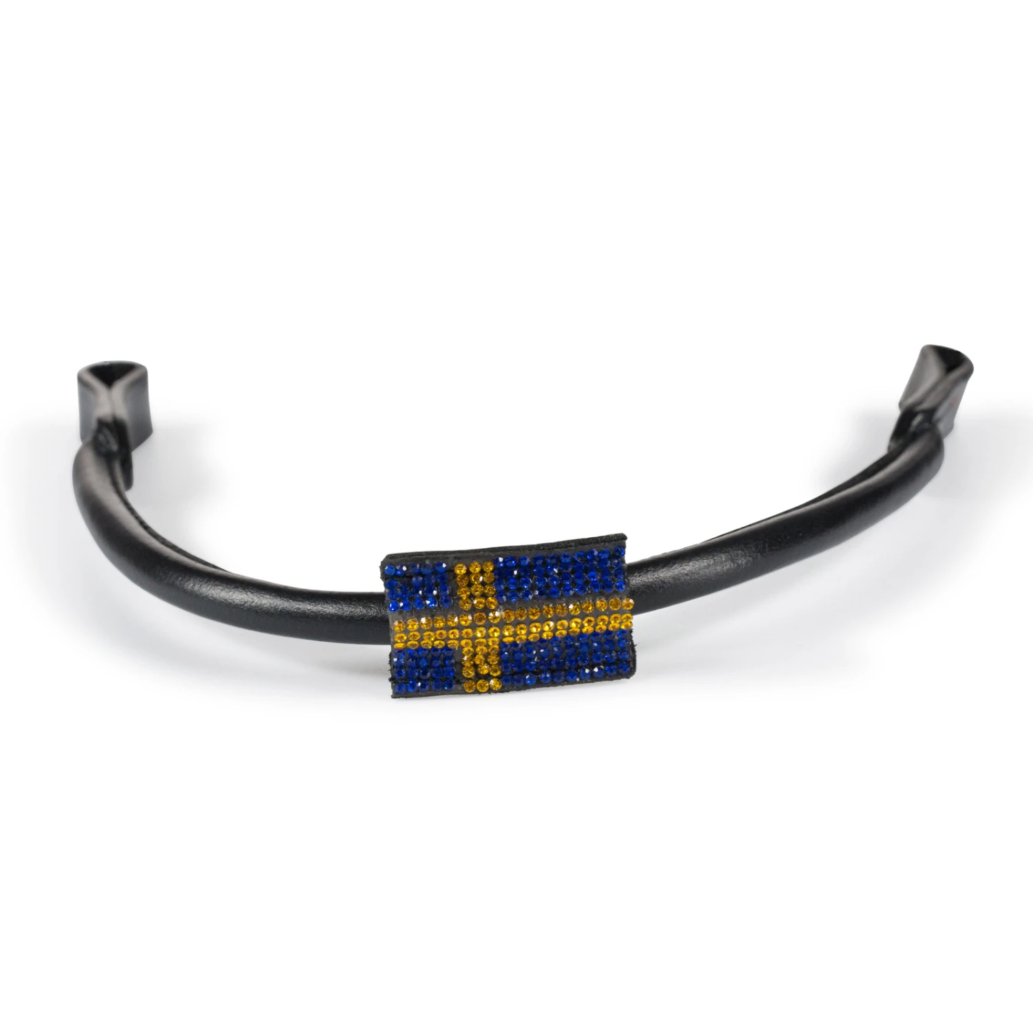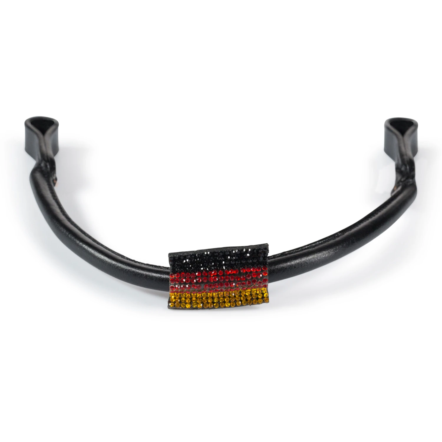 Zeige Deinen Patriotismus mit einem klassischen Lederstirnriemen mit einer kleinen Schlaufe mit hellen Kristallen. Das weiche Leder macht es zu einer perfekten Ergänzung für jedes Zaumzeug.