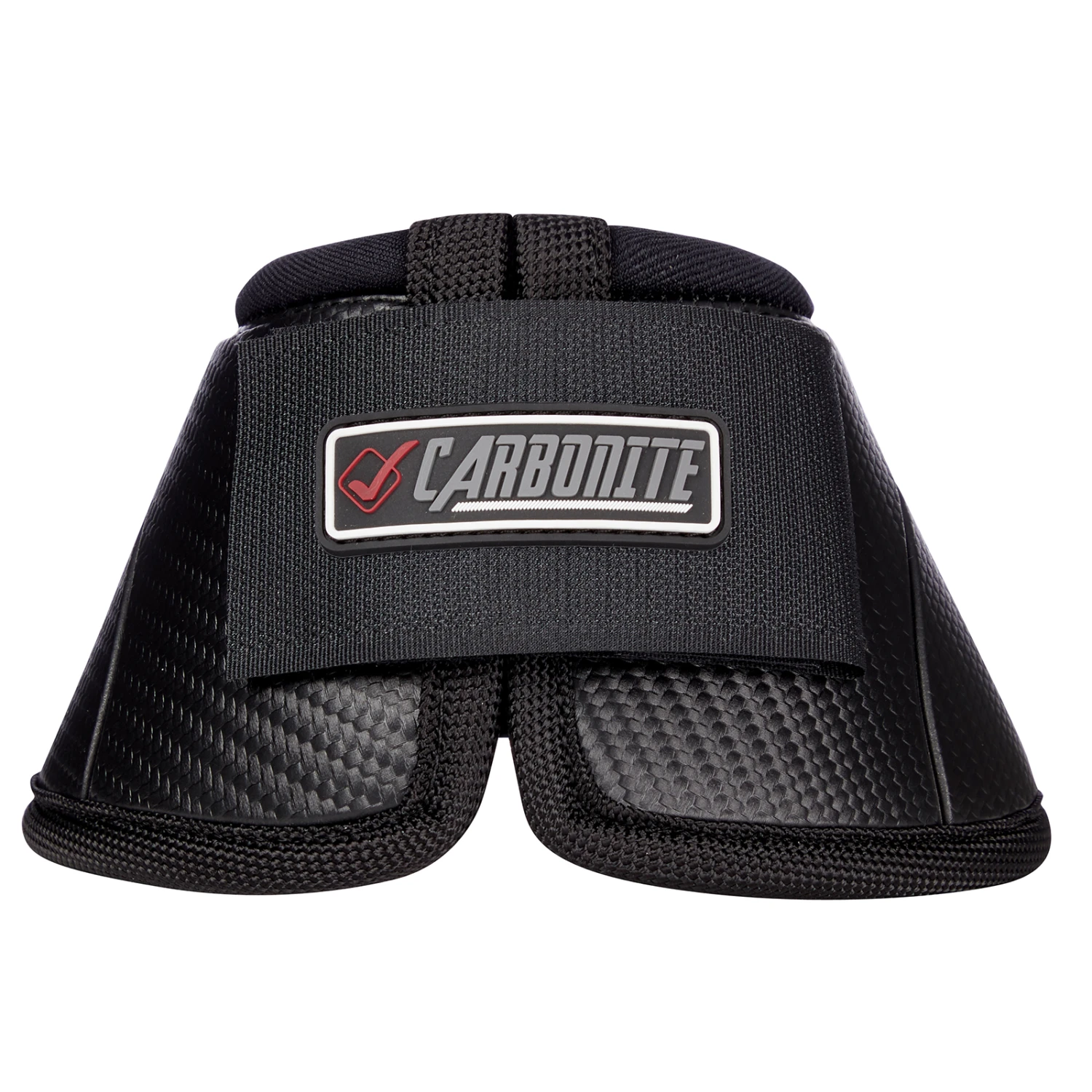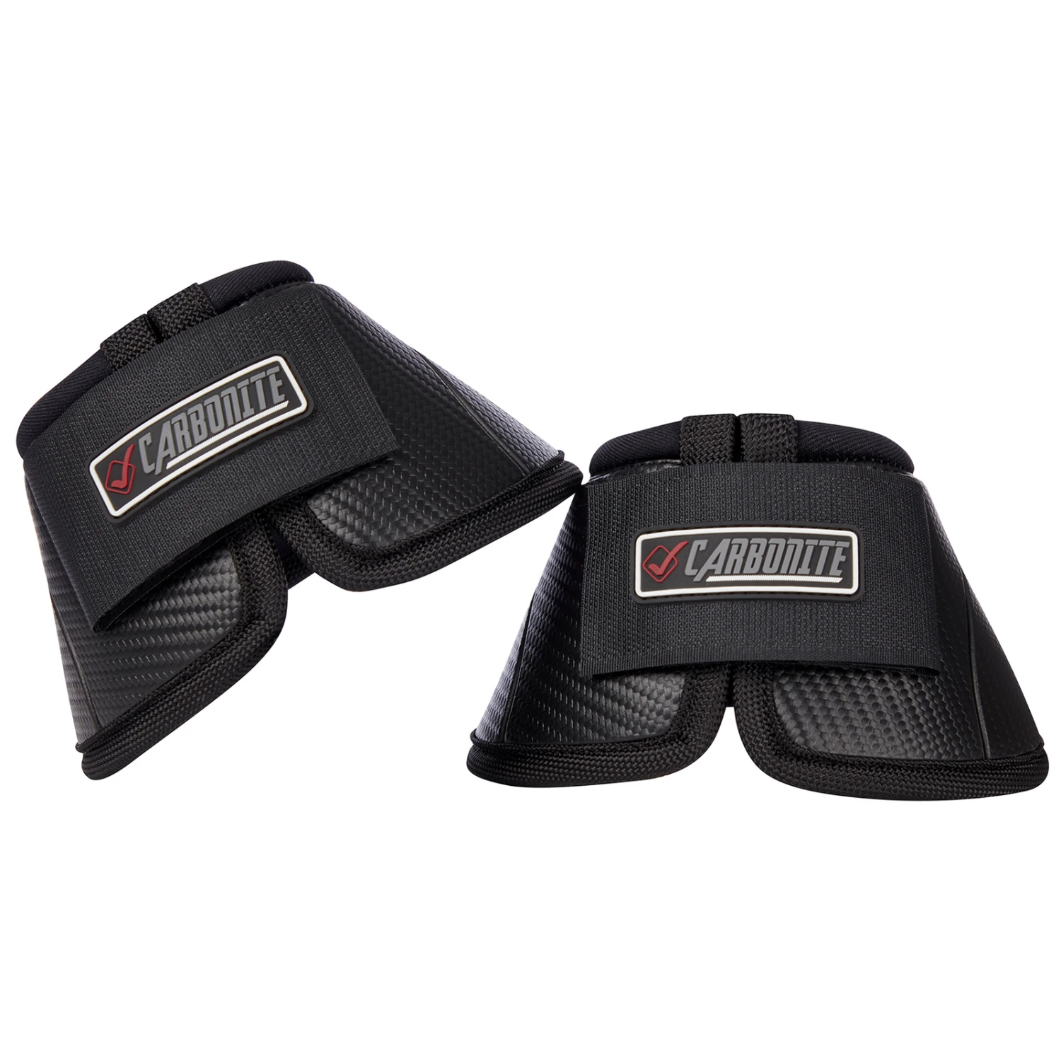 Die anatomisch geformten LeMieux Carbonite Over Reach Hufglocken im Carbon Design schützen die Hufe deines Pferdes reibungslos.