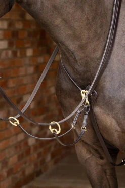 Die speziell entworfenen Martingalringe lassen sich schnell und einfach an- und abschnallen, ohne dass du die Zügel öffnen musst. Die abnehmbaren Zügelbefestigungen können entfernt werden, wenn sie nicht benötigt werden.