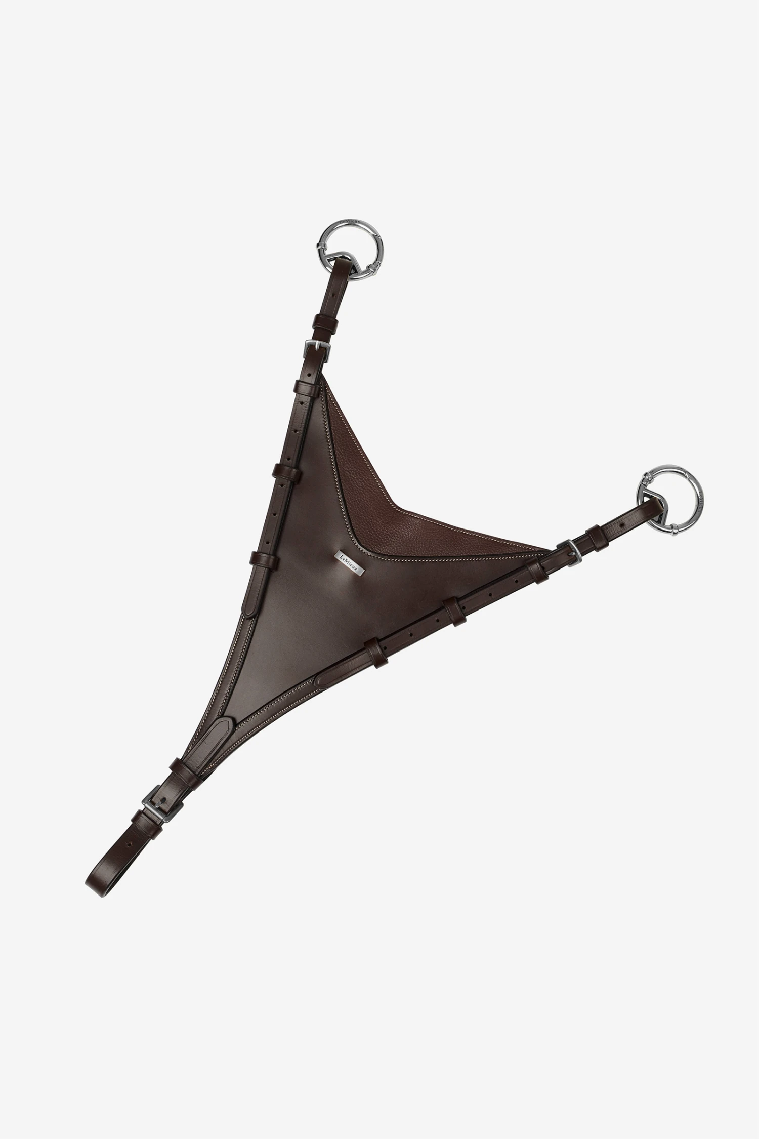 Eine voll verstellbare geschlossene Martingalgabel aus weichem, geöltem Leder. Kann problemlos mit jedem Vorderzeug oder Martingal verwendet werden, um zu verhindern, dass das Pferd in die Martingalgurte beißt oder den Kopf hebt, und schafft einen gleichmäßigen und festen Abstand zwischen den Zügeln