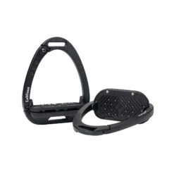 Die Trittfläche wird durch ein Twin-Balance-Bogensystem gestützt, das das Gewicht gleichmäßig auf die Basis des Steigbügelrahmens verteilt. Der Scheitelpunkt des Rahmens ist vertieft und versetzt, was eine 45º-Ausrichtung nach außen fördert und es dem Reiter erleichtert, den optimalen Winkel für den Fuß zu finden und einen verlorenen Steigbügel wiederzufinden.