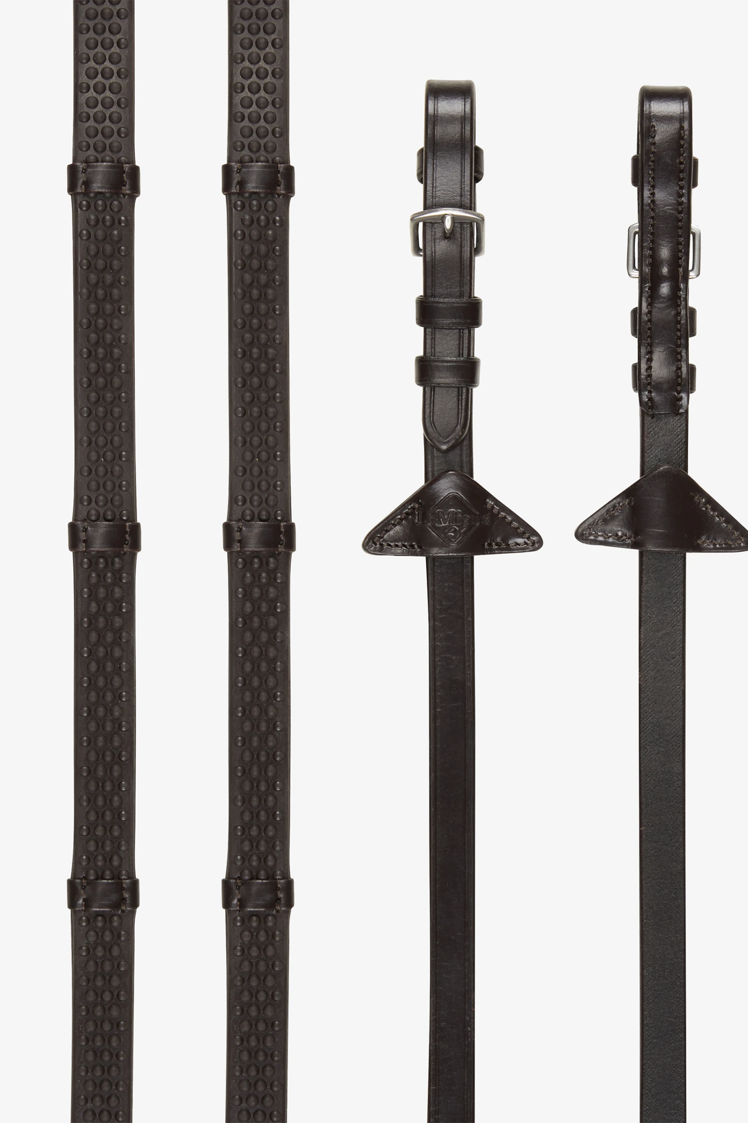 Diese Zügel sind einfach und leicht zu handhaben und eignen sich besonders für Einsteiger oder für die schnelle Arbeit. Die Martingalstopper aus Leder mit dem Markenzeichen von LeMieux sorgen für einen stimmigen Look.