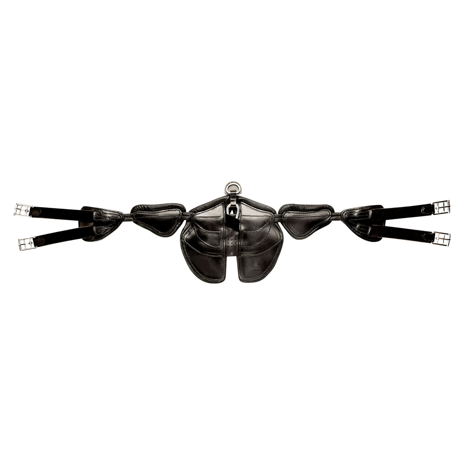 Durch die anatomische Form entsteht kein Druck, sondern optimaler Raum am Brustbein und Ellbogen. Der Gurt ist sehr gut für empfindliche Pferde geeignet. Rollschnallen aus rostfreiem Edelstahl machen das Gurten einfach und der Elastik sorgt für hohen Komfort.
