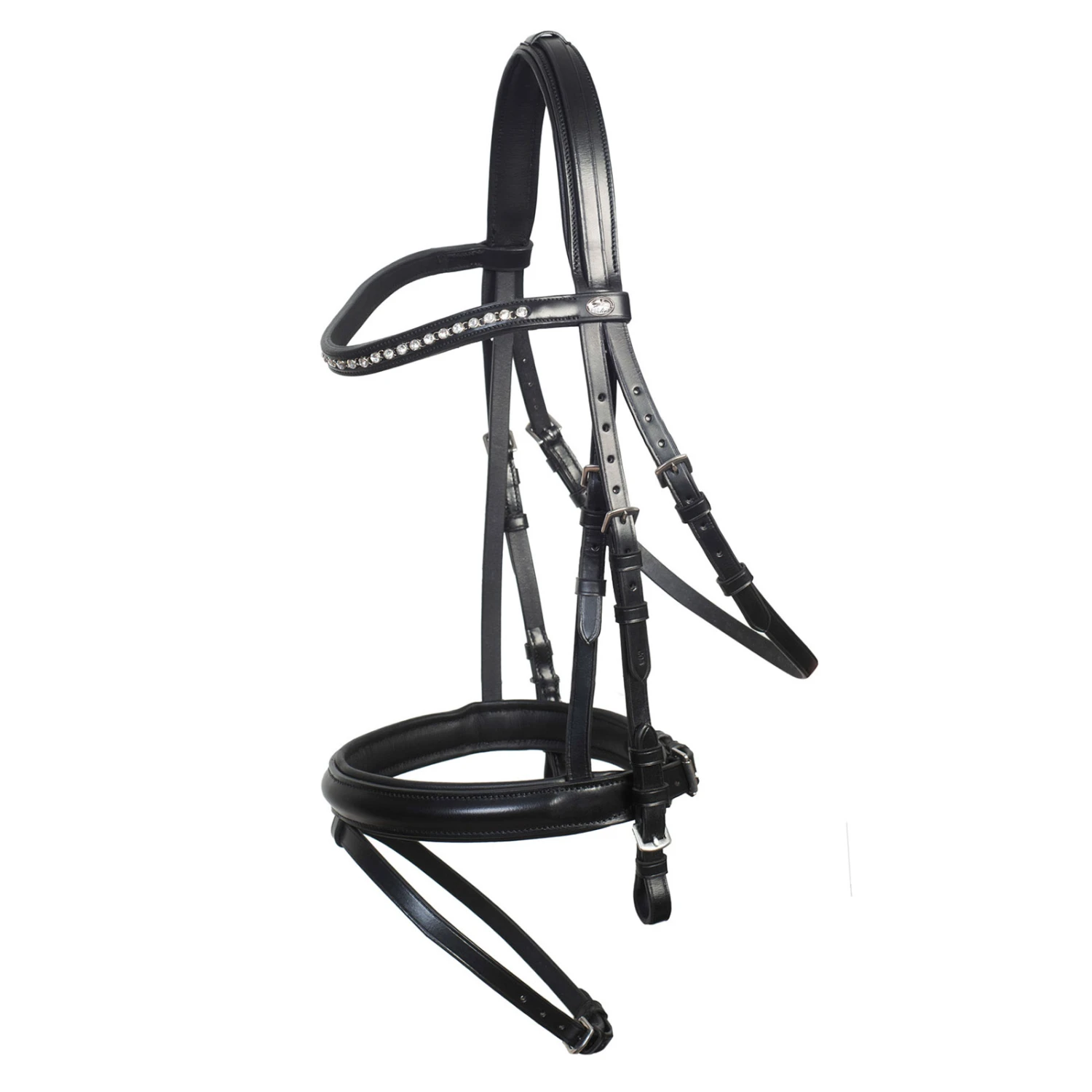 Darf’s ein bisschen mehr sein? Das breite, englisch kombinierte Nasenband und das Stirnband mit den großen Kristallen machen die Trense BERLIN zu einem Highlight unserer neuen NEO-LINE Kollektion. Für ein angenehmes Tragegefühl ist diese Trense mit einem weich unterfütterten Kopfstück ausgestattet.
