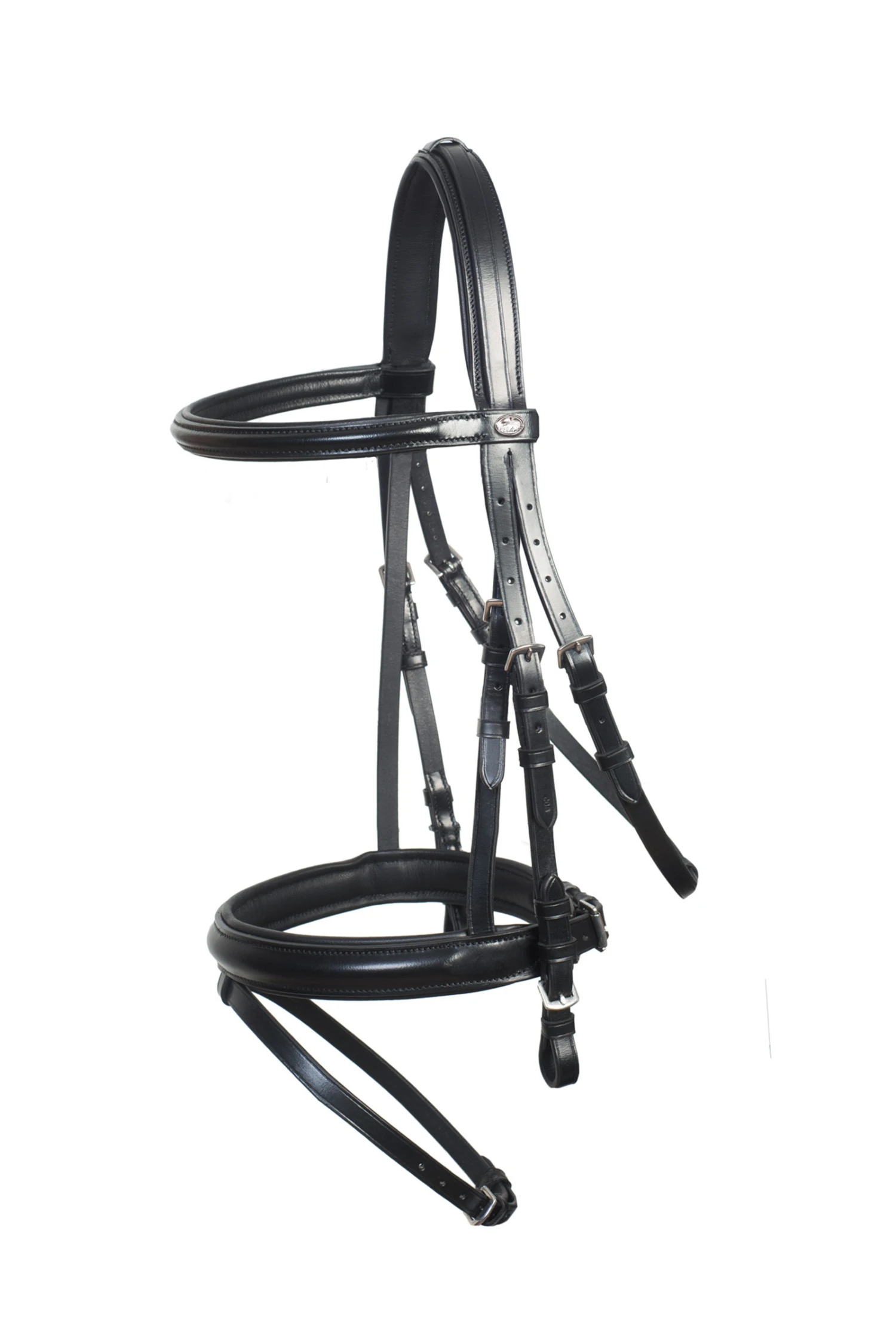 Ein Klassiker für die Liebhaber schlichter Eleganz: Unsere Trense BREMEN. Englisch kombiniert und mit unterfüttertem Stirnband ist sie der ideale Begleiter für den Alltag.
