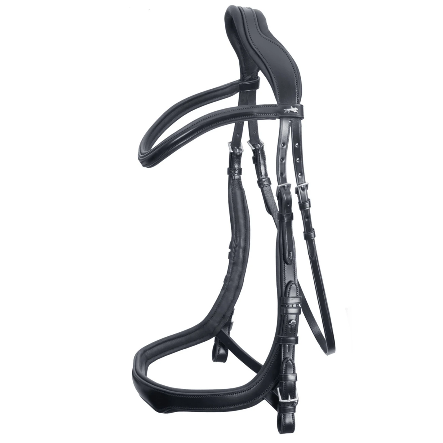 Die anatomische Spezialtrense Equitus Delta von Schockemöhle Sports überzeugt durch maximalen Tragekomfort für das Pferd und höchste Ansprüche an die Passform. Mit ihrem geschwungenen Reithalfter, das den Hauptgesichtsnerv umgeht, ist sie auch optisch ein Hingucker. Das weich unterlegte Genickstück und das geschwungene Stirnband mit extra weiter Passform, engen das Pferd zu keiner Zeit ein und vermeiden unangenehmen Druck auf den empfindlichen Pferdekopf. Dank der verbesserten Knopfnieten, kann die Trense leicht verstellt werden. Eine funktionales Modell im modernen Look!