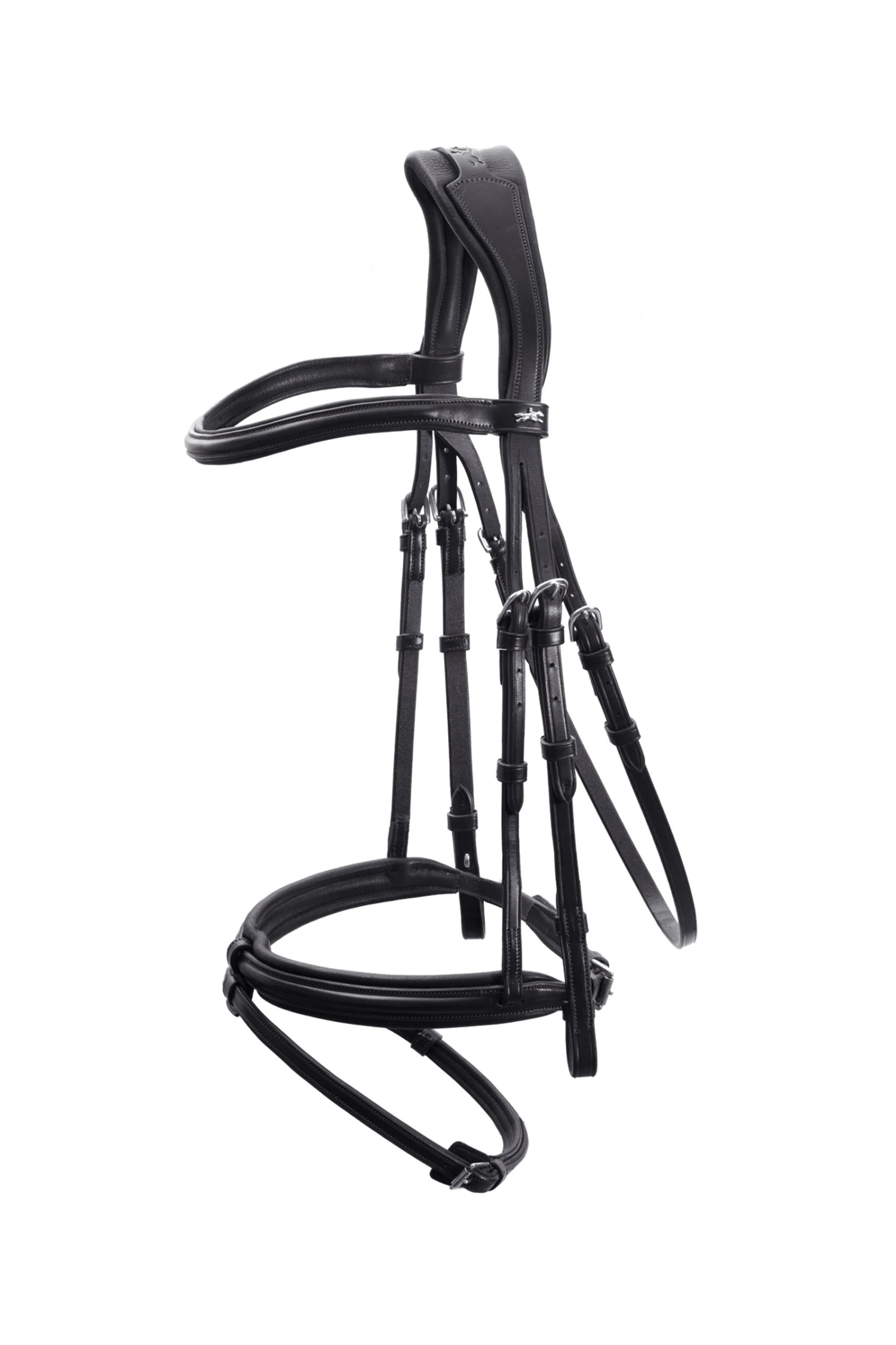 - Zaumzeug mit weichem, anatomisch geformtem, schmalem Genickstück und weich gepolstertem, anatomisch vorgeformtem Nasenriemen
