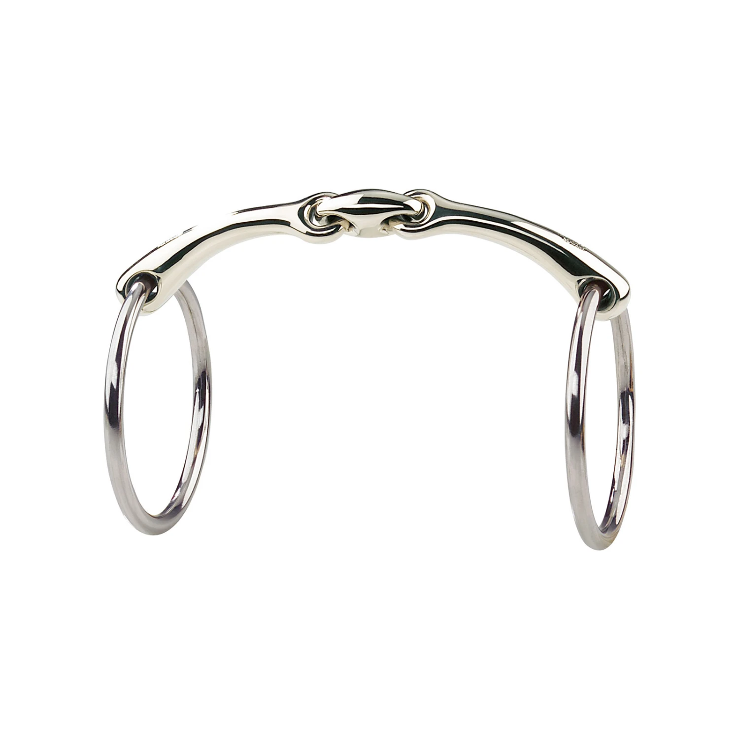 Mundstück: Doppelt gebrochen.Material: Sensogan mit Seiten aus Edelstahl.Gebissstärke: 14mm.Ringdurchmesser: 55mm.